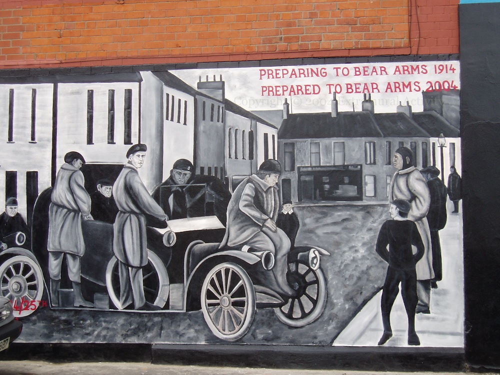 “Preparing to bear arms 1914 – Prepared to bear arms 2004.” The Ulster Volunteers and the modern UVF are put in parallel.