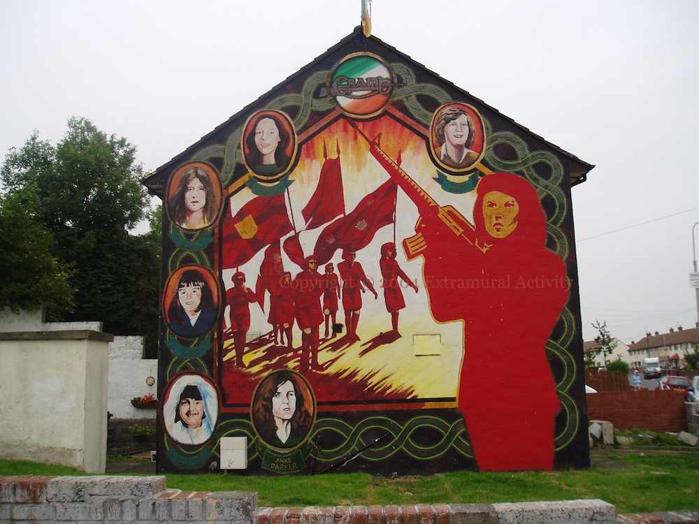 This 2002 Ballymurphy mural commemorates females (including several Cumann Na mBan members) who died in the troubles: anti-clockwise, they are Maura Meehan, Anne Marie Pettigrew, Dorothy Maguire, Eileen Mackin, Catherine (Cathy) McGartland, Anne Parker.