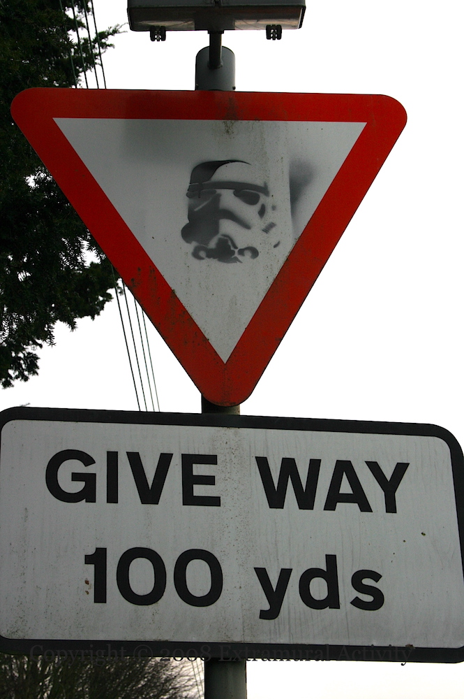 Give Way To Storm Troopers 2008-01-022024-12-15Extramural Activity Slow down now, or be faced with wildly inaccurate blaster-rifle fire. Church Road, Glengormley/Gleann Gormlıath Click image to enlargeCopyright © 2008 Seosamh Mac CoılleX00226 give way 100 yards Rate ThisShare this: Email a link to a friend (Opens in new window) Email Share on Mastodon (Opens in new window) Mastodon Share on Reddit (Opens in new window) Reddit Share on Bluesky (Opens in new window) Bluesky Like Loading...