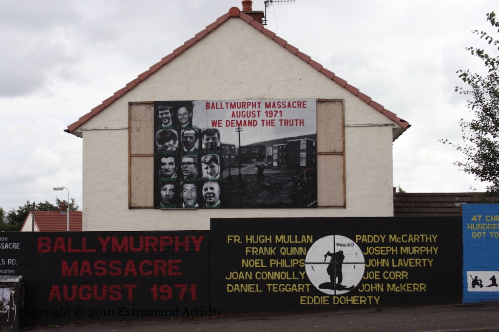 “Ballymurphy Massacre – August 1971 – We demand the truth” with portraits of the 11 dead – Quinn, Mullan, Connolly, Teggart, Philips, Murphy, McCarthy, Doherty, Laverty, Corr, McKerr.
