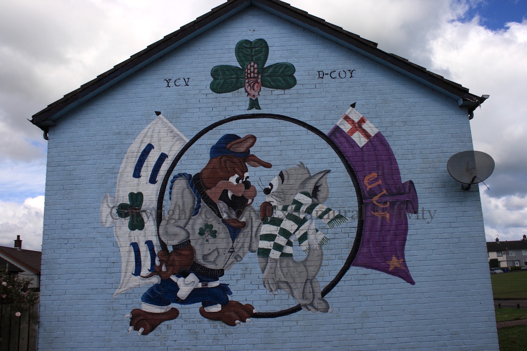 Listen, Pussycat 2011-06-282024-12-16Extramural Activity YCV volunteer Spike the bulldog has a word (backed up by a pistol on his right hip) with Celtic-supporter Tom cat. Glenfarne Place, Larne. Click image to enlargeCopyright © 2011 Seosamh Mac CoılleX00523 X00524 Rate ThisShare this: Click to email a link to a friend (Opens in new window) Email Click to share on Mastodon (Opens in new window) Mastodon Click to share on Reddit (Opens in new window) Reddit Click to share on Bluesky (Opens in new window) Bluesky Like Loading...