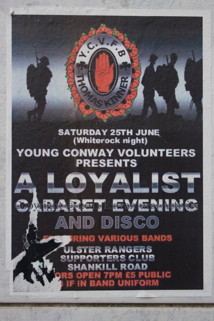 Saturday 25th June (Whiterock night) Young Conway Volunteers Presents a loyalist cabaret evening and disco, featuring various bands, Ulster Rangers Supporters Club, Shankill Road.” The flute band is associated with the local , with murals to both the flute band There are murals on either side of Conway Street at Conway Walk to both the YCVFB (featuring Thomas and Noel Kinner) and the associated 5th platoon (UVF).