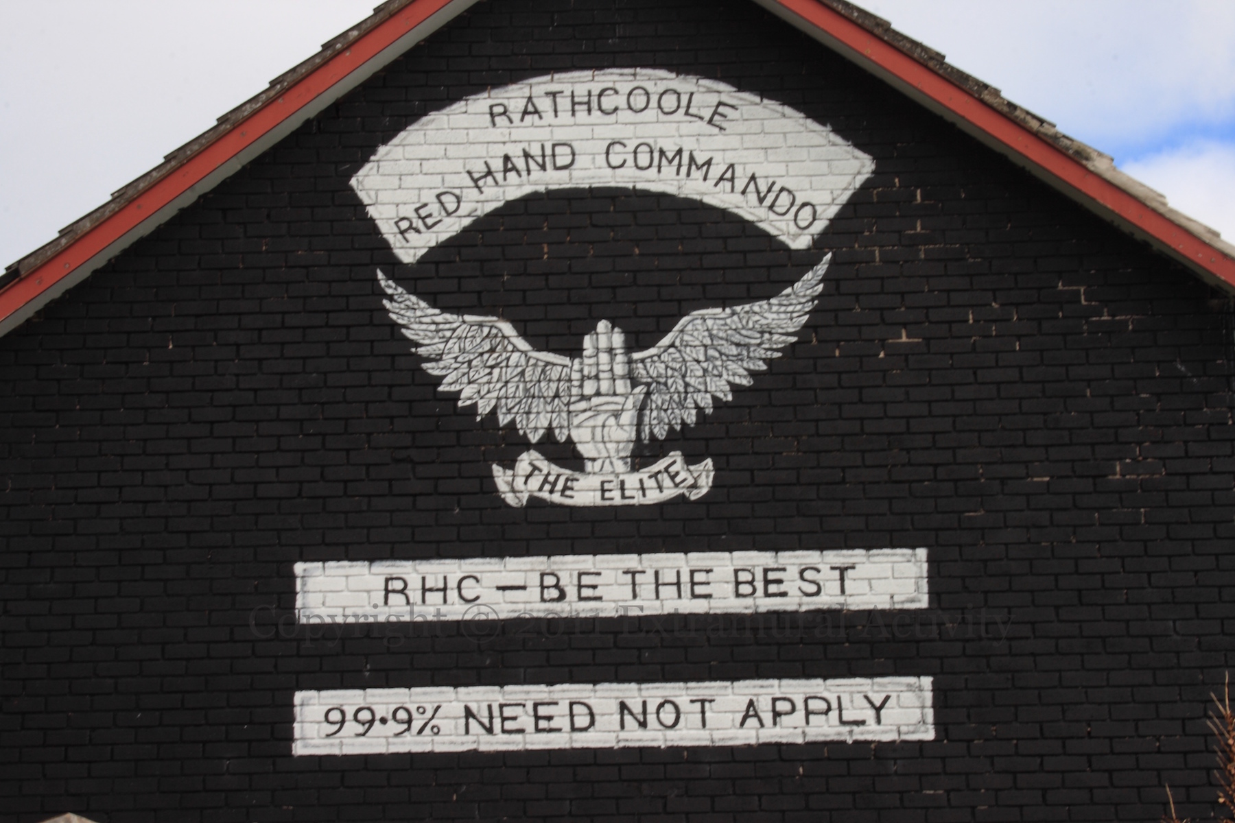99.9% Need Not Apply 2011-09-082024-12-16Extramural Activity “Rathcoole Red Hand Commando – The elite – Be the best – 99.9% need not apply.” Derrycoole Way, Rathcoole, Newtownabbey. Click image to enlargeCopyright © 2011 Seosamh Mac CoılleX00516 Rate ThisShare this: Email a link to a friend (Opens in new window) Email Share on Mastodon (Opens in new window) Mastodon Share on Reddit (Opens in new window) Reddit Share on Bluesky (Opens in new window) Bluesky Like Loading...