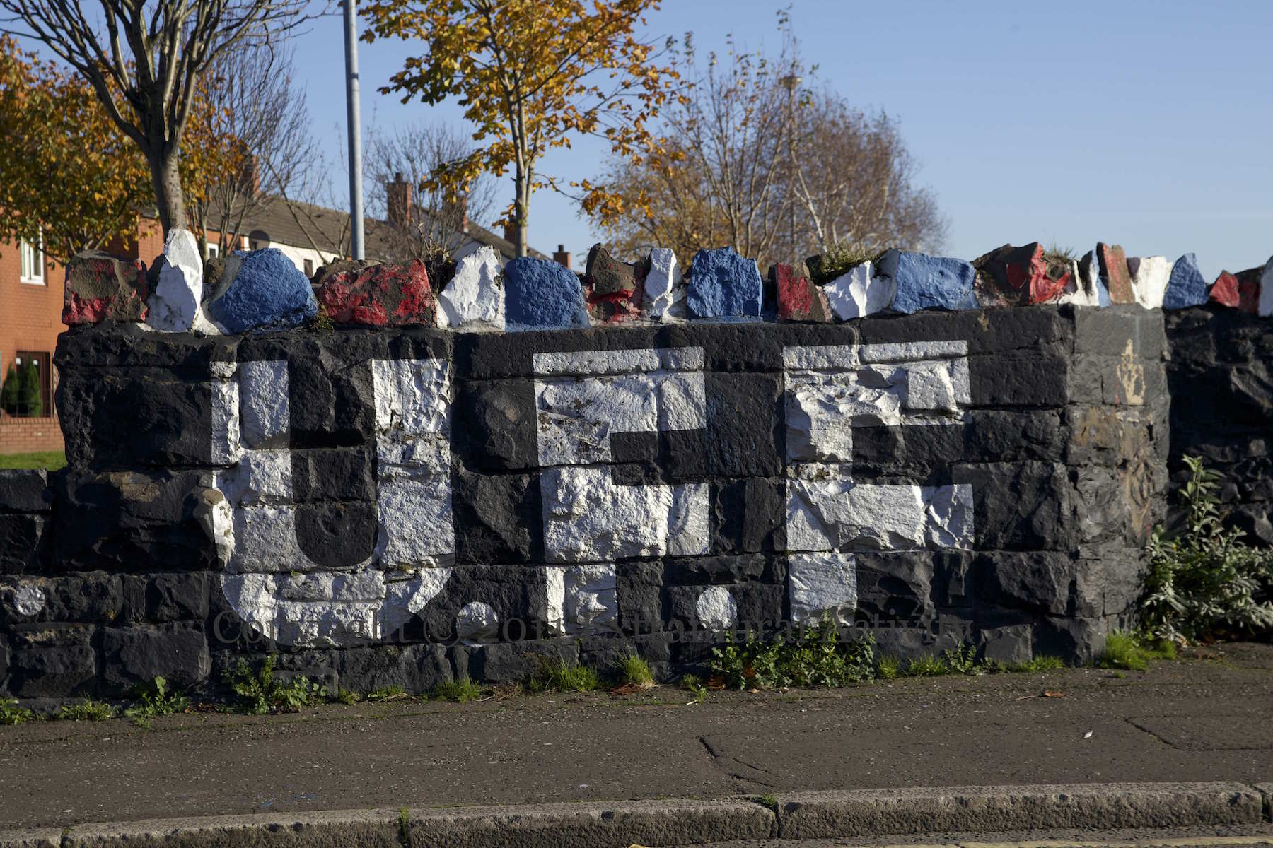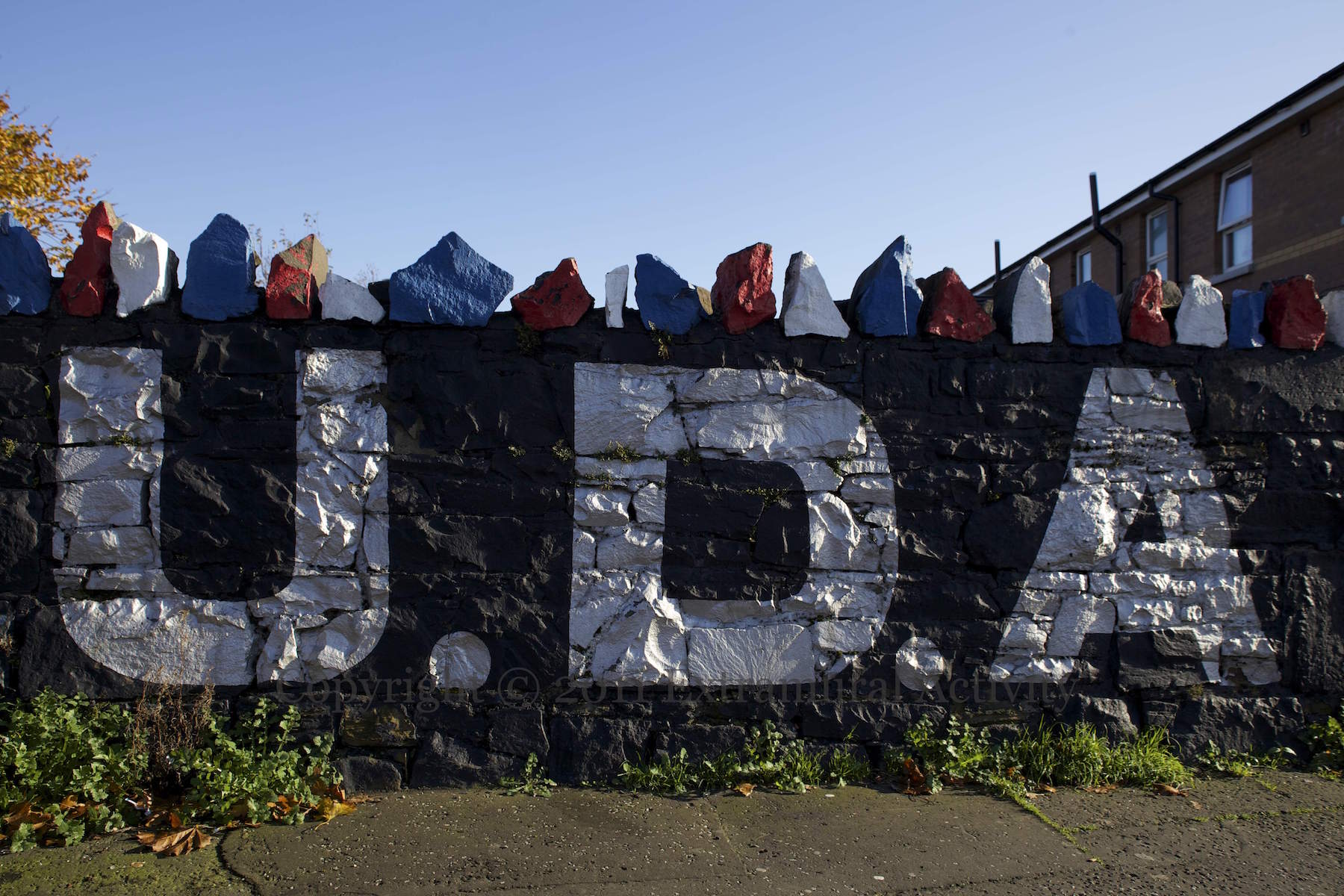 Keep Off 2011-11-052024-12-16Extramural Activity Large “UDA” and “UFF” lettering on Dee Street, east Belfast, with red-, white-, and blue-painted pointed rocks to keep people from climbing on the wall. Click image to enlargeCopyright © 2011 Seosamh Mac CoılleX00437 X00438 Rate ThisShare this: Click to email a link to a friend (Opens in new window) Email Click to share on Mastodon (Opens in new window) Mastodon Click to share on Reddit (Opens in new window) Reddit Click to share on Bluesky (Opens in new window) Bluesky Like Loading...