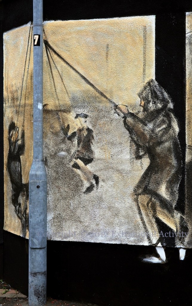 Ed Reynolds is the artist. The mural was commissioned by the Belfast City Council, in consultation with the Sandy Row Community Forum and the Residents’ Association