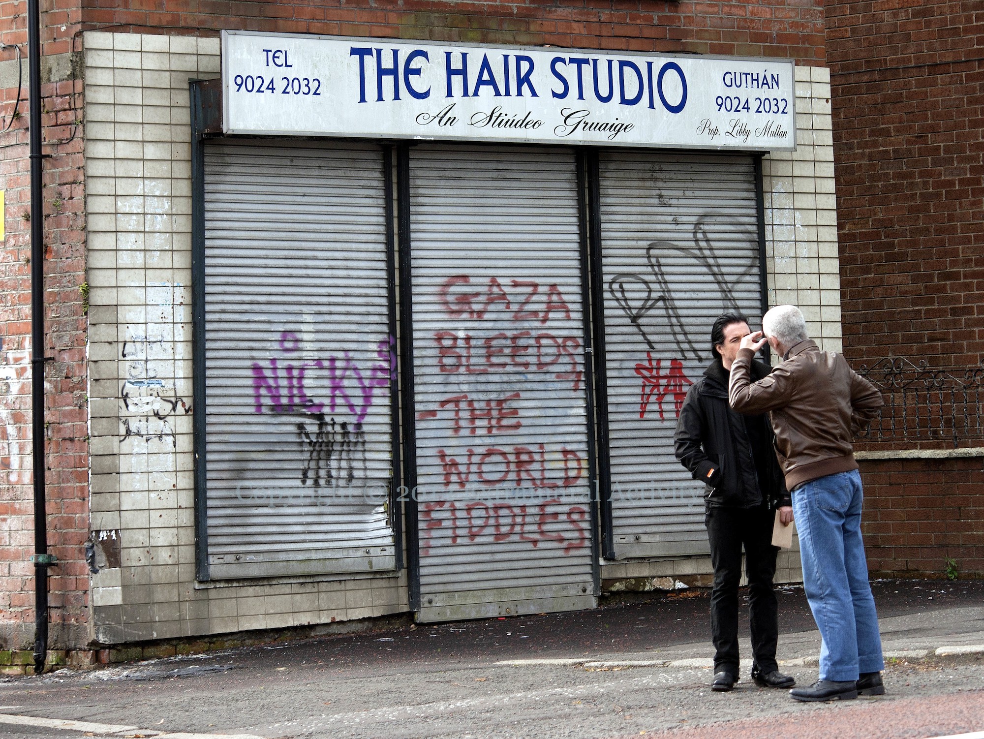 Hair Peace 2012-10-112024-12-16Extramural Activity “Gaza bleeds, the world fiddles.” Falls Road, September 26, 2012. Click image to enlargeCopyright © 2012 Seosamh Mac CoılleX00657 gaza bleeds the world fiddle, the hair studio, an stıúıdeo gruaıge Rate ThisShare this: Click to email a link to a friend (Opens in new window) Email Click to share on Mastodon (Opens in new window) Mastodon Click to share on Reddit (Opens in new window) Reddit Click to share on Bluesky (Opens in new window) Bluesky Like Loading...