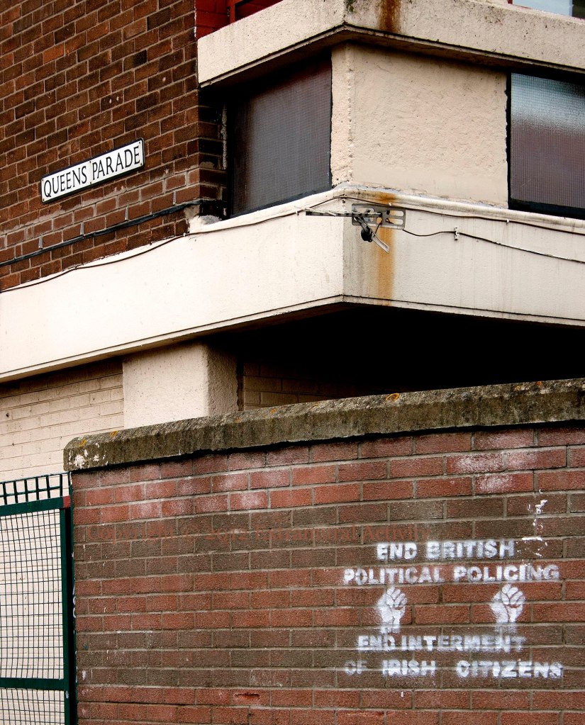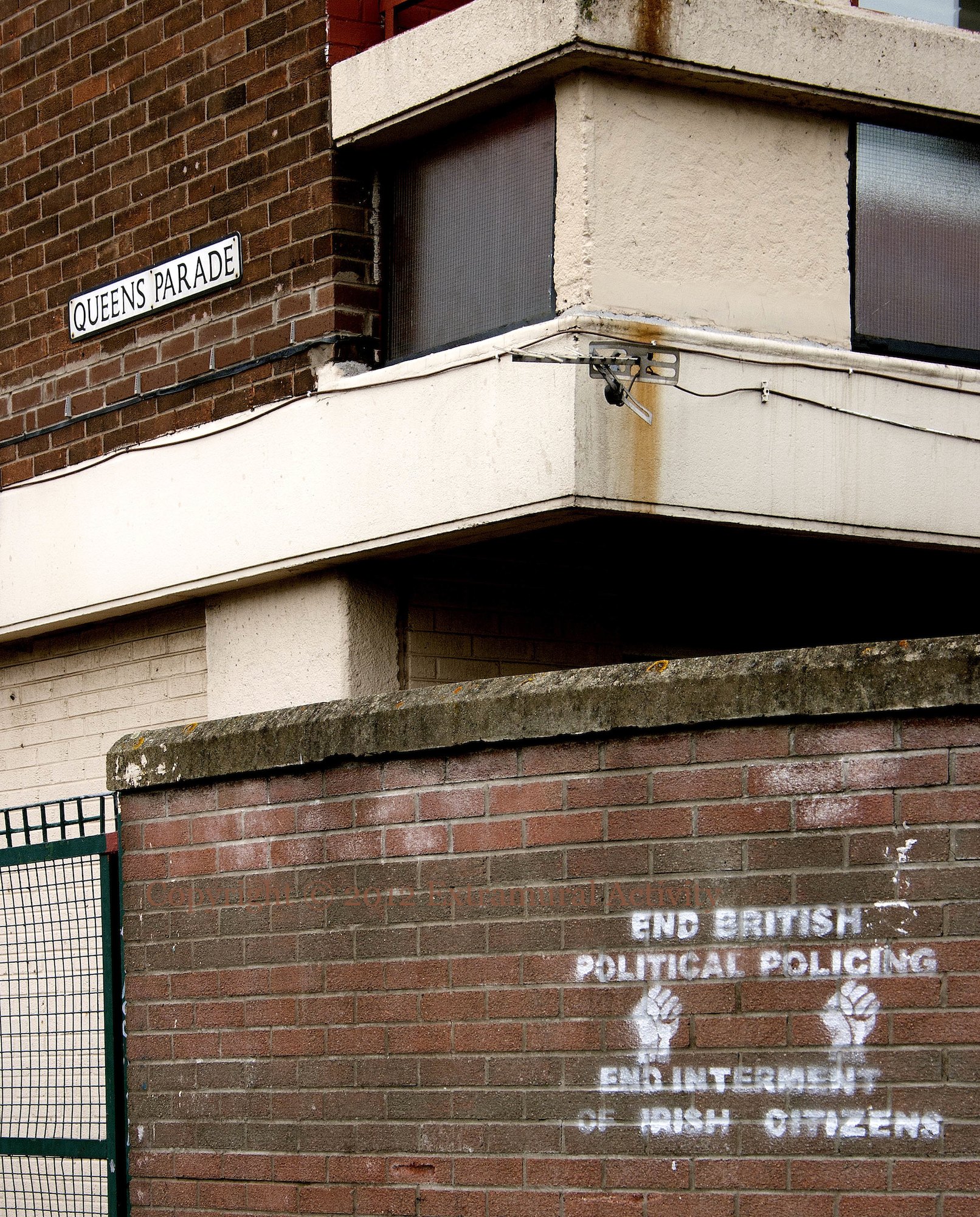 Queen’s Parade 2012-10-182024-12-16Extramural Activity “End British political policing. End internment of Irish citizens.” Ant-Agreement stencil in the New Lodge. Click image to enlargeCopyright © 2012 Seosamh Mac CoılleX00669 Rate ThisShare this: Click to email a link to a friend (Opens in new window) Email Click to share on Mastodon (Opens in new window) Mastodon Click to share on Reddit (Opens in new window) Reddit Click to share on Bluesky (Opens in new window) Bluesky Like Loading...