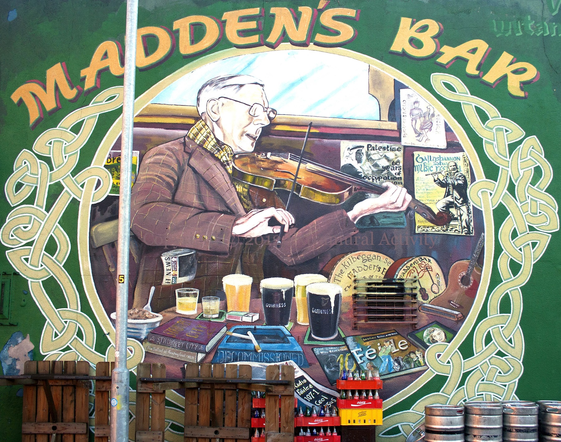 Fiddler Art Lundy is depicted in the mural on the side of Maddens bar in Berry St, just below Castle Court. Note the ‘decommissioned’ ashtray!