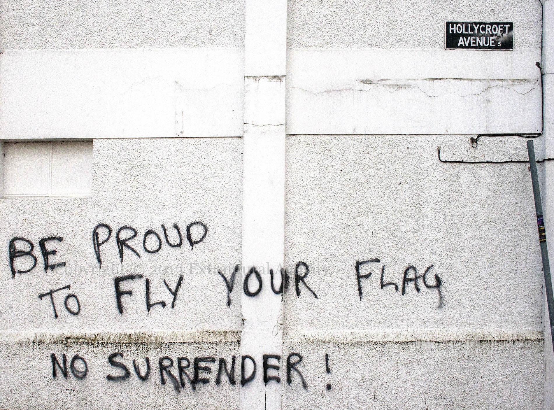 Let Your Union Fly Flag 2013-01-262024-12-16Extramural Activity Graffiti in east Belfast concerning the on-going dispute over the union flag on Belfast City Hall: Be proud to fly your flag. No surrender! Click image to enlargeCopyright © 2013 Seosamh Mac CoılleX00906 Rate ThisShare this: Click to email a link to a friend (Opens in new window) Email Click to share on Mastodon (Opens in new window) Mastodon Click to share on Reddit (Opens in new window) Reddit Click to share on Bluesky (Opens in new window) Bluesky Like Loading...