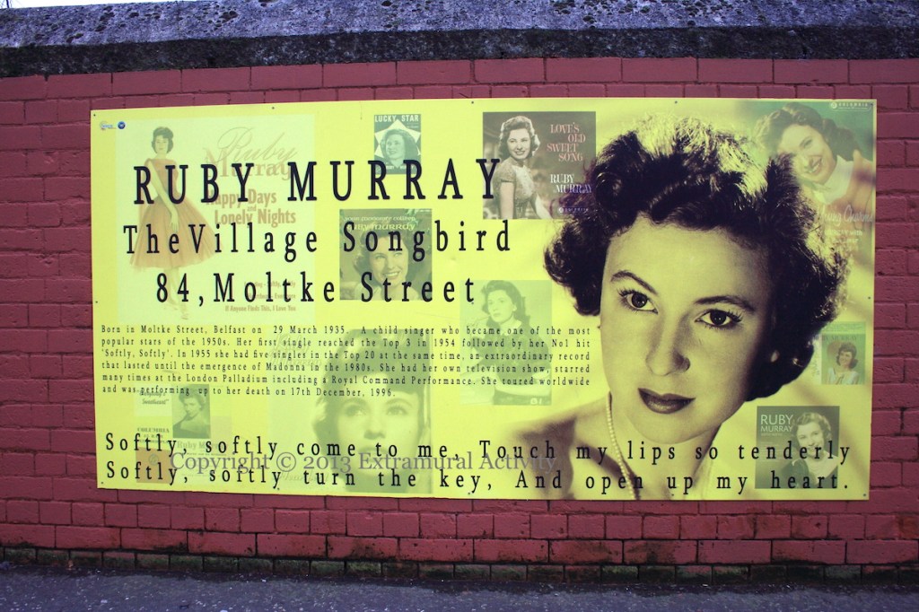 “Born in Moltke Street, Belfast, on 29 March 1935. A child singer who became one of the most popular stars in the 1950s. Her first single reached the Top 3 in 1954 followed by her No 1 hit ‘Softly, Softly’. In 1955 she had five singles in the Top 20 at the same time, an extraordinary record that lasted until the emergence of Madonna in the 1980s. She had her own television show, starred many times at the London Palladium including a Royal Command Performance. She toured worldwide and was performing up to her death on 17th December, 1996” ‘Softly, softly, come to me/Touch my lips so tenderly/Softly, softly, turn the key/And open up my heart.’ (youtube).