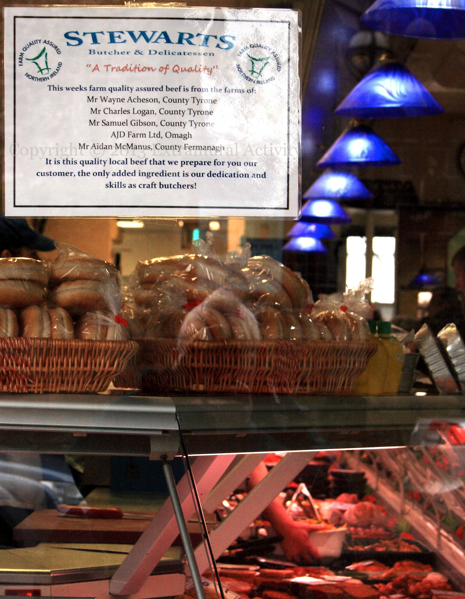The can be no beef with this beef. The horse-meat scandal (WP) is now a month old and has “Gone Interrailing” (Spiegel Online) to Britain and the Continent, but the reverberations can still be felt in Ireland and Northern Ireland. This butchers in Inıs Ceıthleann/Enniskillen attempts to reassure its customers by providing the provenance of this week’s beef.
