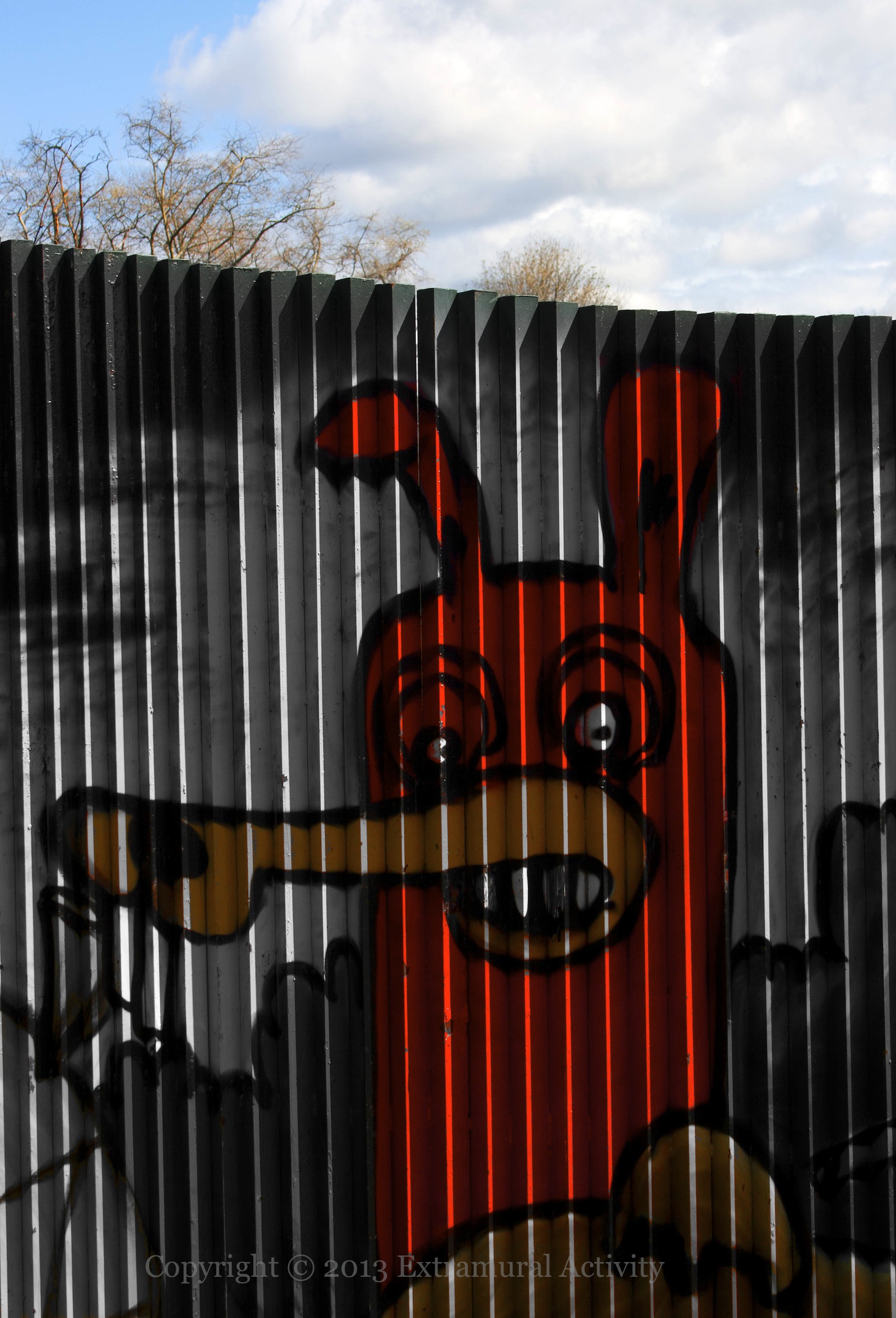 This street art is on a wall/fence that runs right through the middle of Alexandra Park, separating the loyalist Mountcollyer and republican Newington neighbourhoods. The ‘History Comes Alive’ triptych is on the nationalist side.