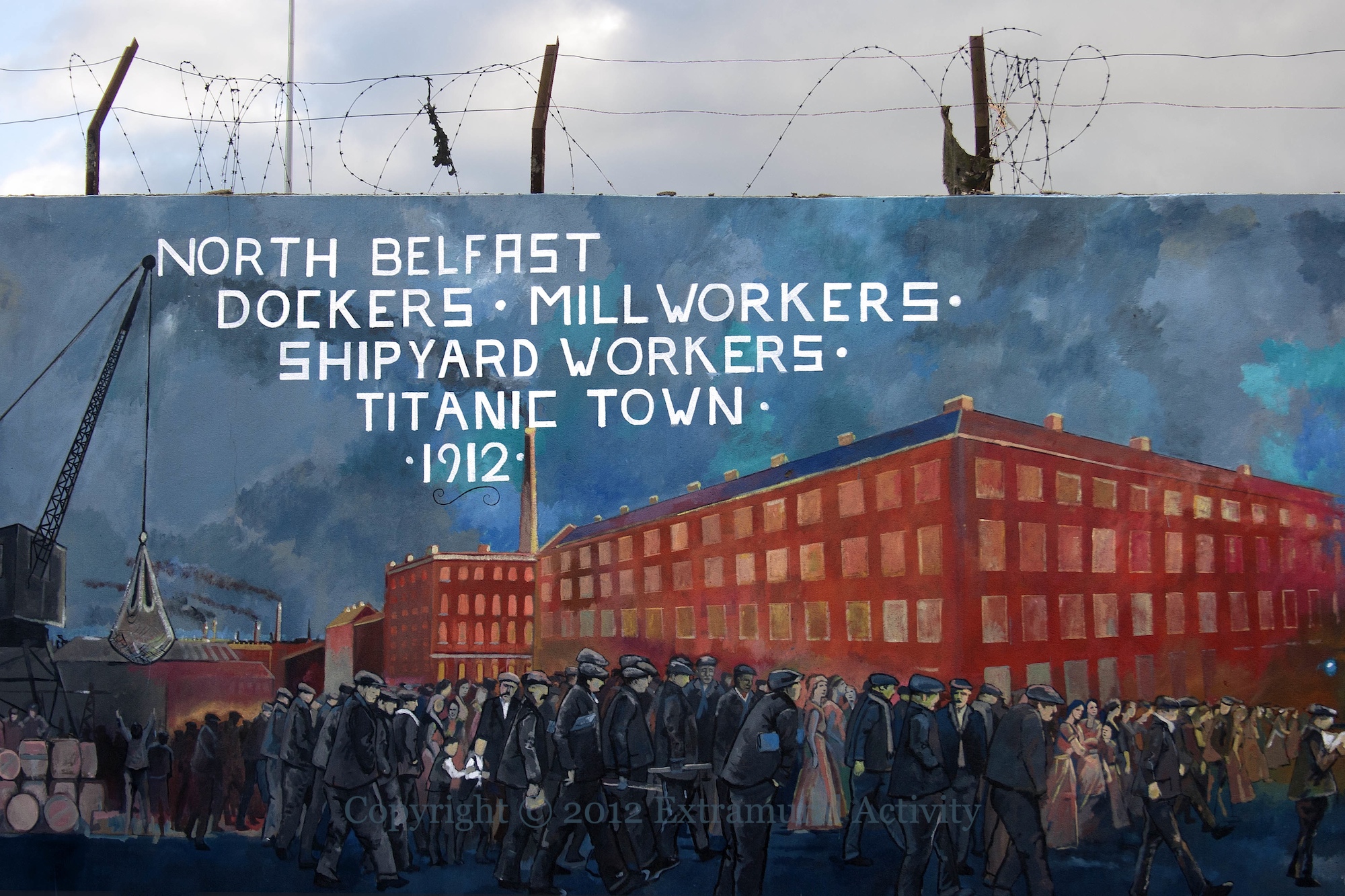 X00686 X01139 X00687 gibraltar north belfast dockers millworkers shipyard workers titanic town 1912, this mural was developed under belfast city council’s titanic community engagement project, with support from the titanic foundation. thanks go to jim crothers and the hubb community resources center