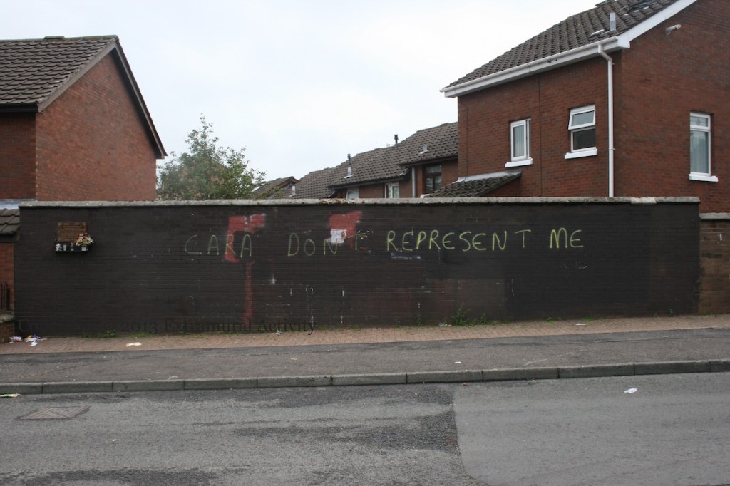 “This memorable [sic] plague [sic] is dedicated to the 1st victim of the present troubles, Sammy McLarnon, RIP, who was brutally murdered in his own home at 37 Herbert St by the RUC on 15th Aug., 1969.” For more, see this Irish Times article about a 1999 community inquest.