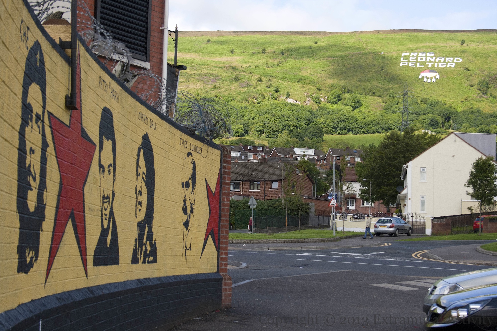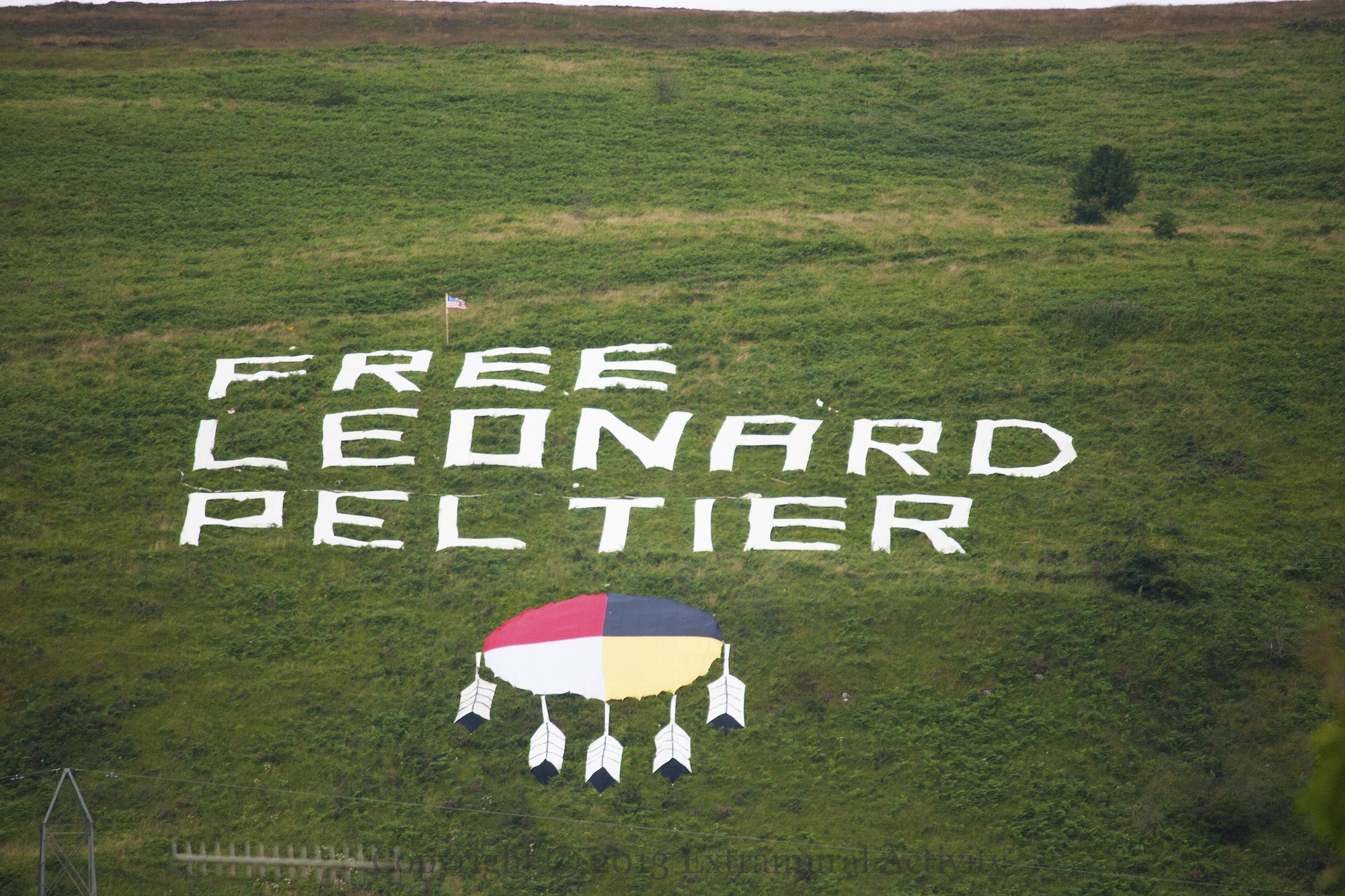 A message for the U.S. government on the side of Black Mountain this week, concerning the incarceration of Leonard Peltier for the shooting deaths of two FBI agents in South Dakota (WP). A U.S. flag flies at the top of the lettering, and the scale of the piece can be gauged from the small crowd of people standing off to the left. Below is a straight-on shot and, before that, a view from the corner of the shops at the Springfield/Whiterock junction.