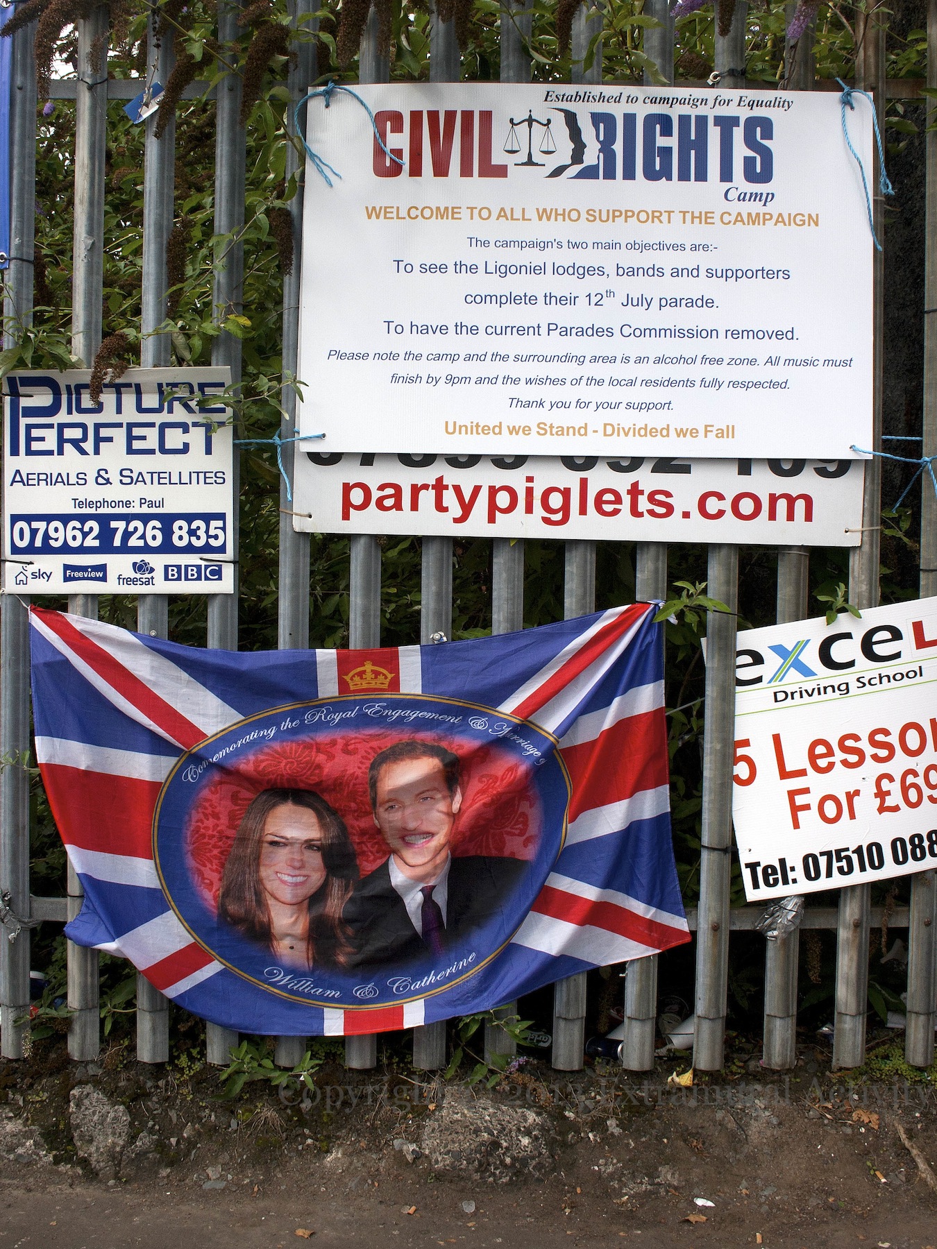 X01290 X01291 X01292 scales of justice, commemorating the royal engagement and marriage william & catherine; woodvale defenders of the union flag south support loyal orders hatred of orange culture no surrender not now not ever respect our community south londonderry vanguard bears strictly no alcohol to be consumed residential area