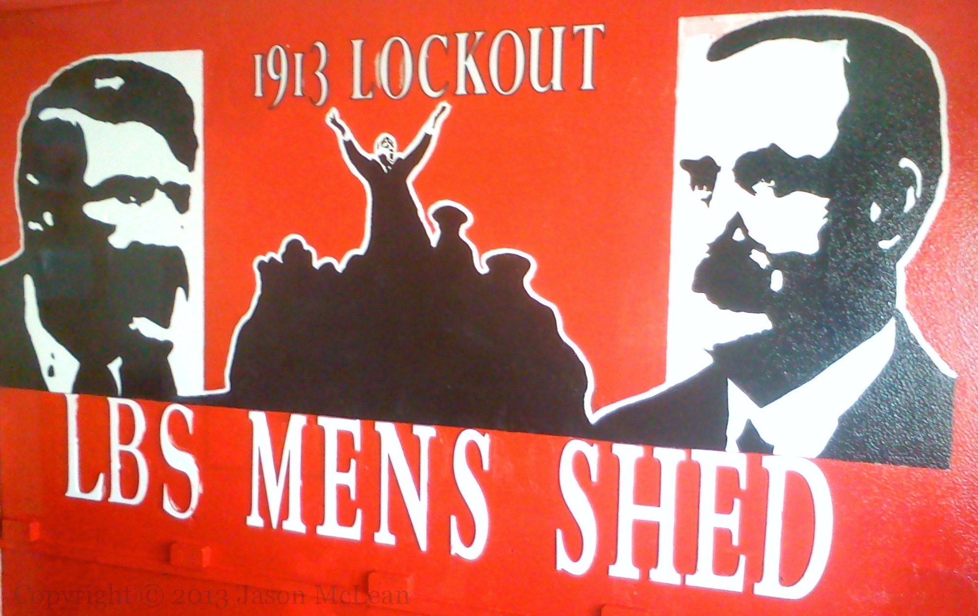This image comes to us courtesy of Jason McLean and the LBS (Loughlinstown, Ballybrack, and Shankill) Men’s Shed (LBS facebook page | Men’s Sheds.ie) who painted the piece shown above to commemorate the 100th anniversary of the Dublin Lockout.