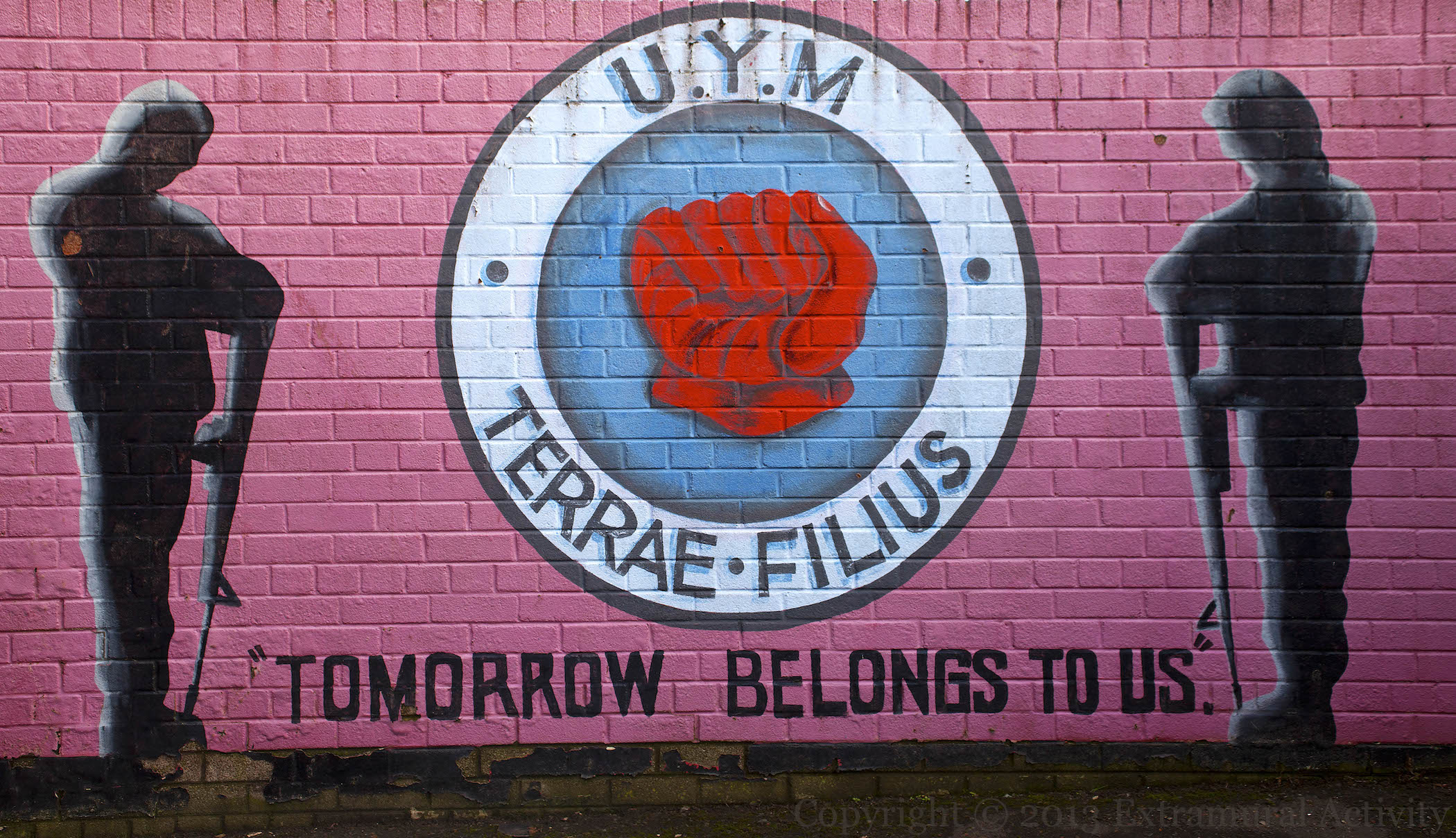 Here are two more pieces of the memorial in Kenbaan Street to deceased UDA members. A previously-featured panel honoured the LPA; these are devoted to the UDA’s 4th (Castlereagh) battalion and its youth wing, the UYM – Ulster Young Militants.