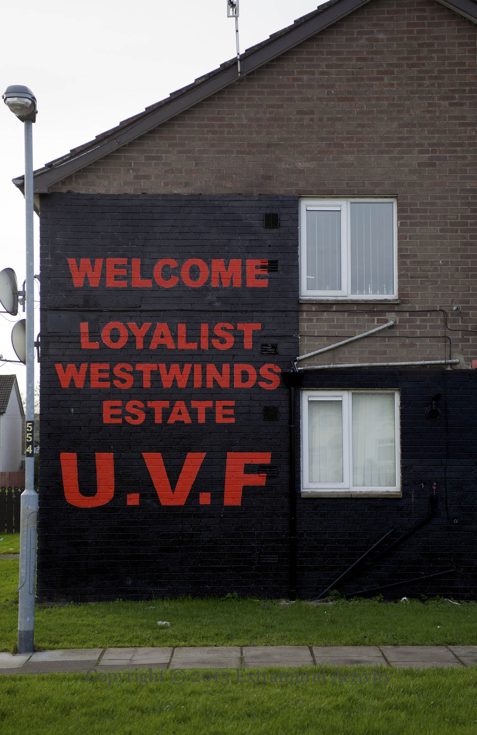The Westwinds 2014-02-032024-12-21Extramural Activity “Welcome [to the] loyalist Westwinds estate U.V.F.” – mural a little way down Blenheim Drive from the entrance to the Westwinds estate, Newtownards. Click image to enlargeCopyright © 2013 Seosamh Mac CoılleX01498 Rate ThisShare this: Email a link to a friend (Opens in new window) Email Share on Mastodon (Opens in new window) Mastodon Share on Reddit (Opens in new window) Reddit Share on Bluesky (Opens in new window) Bluesky Like Loading...