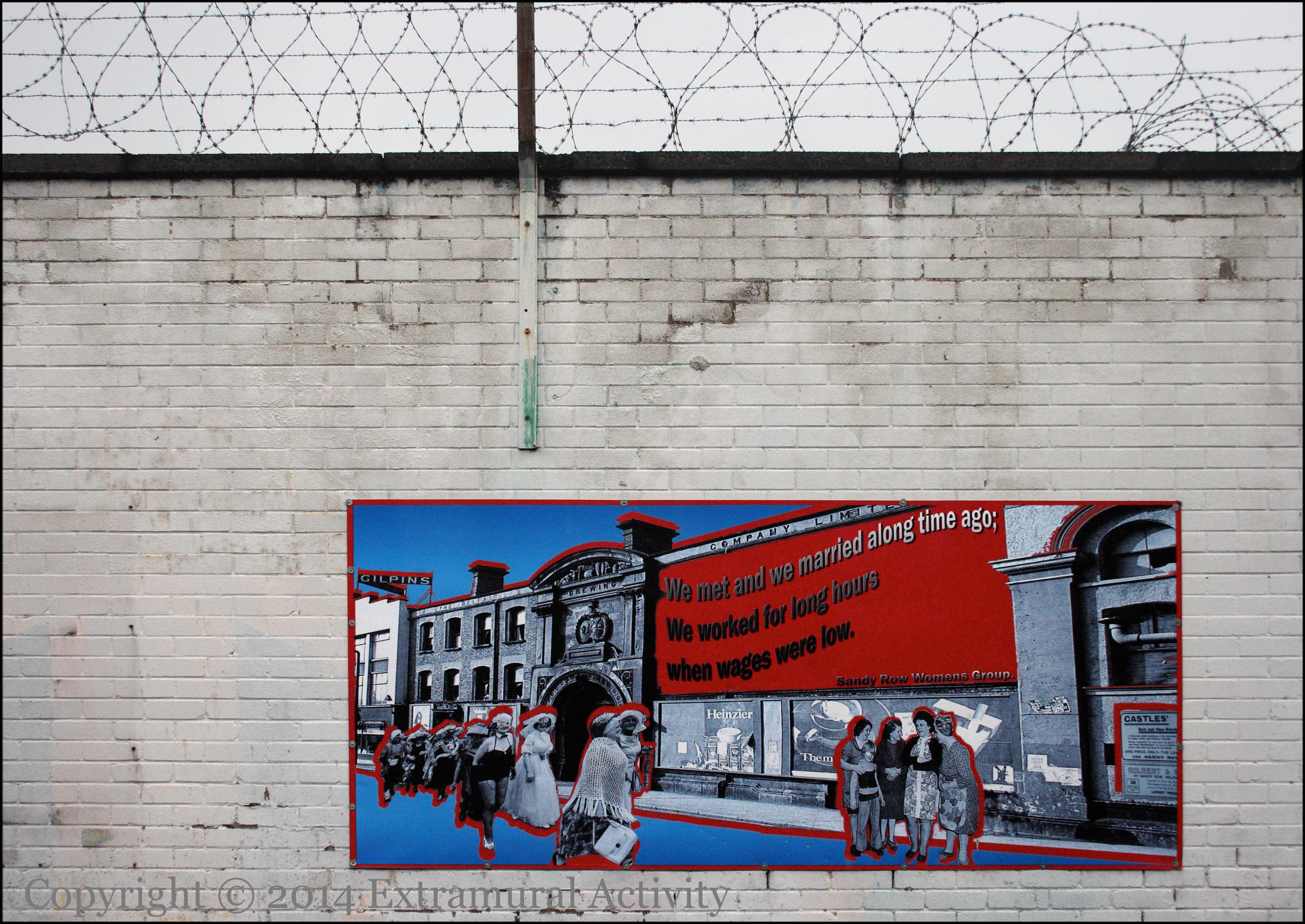 Above and below are boards 3 and 4 of the ‘Sandy Row memories’ at the end of Blythe Street, showing Murray’s Tobacco Factory (in Linfield Road/Sandy Row, which closed in 2005 before being refurbished and opening in 2012 as Murray’s Exchange) and the old Belfast & Ulster Brewing building (unchanged image here), home to the south Belfast Ulster Volunteers (Sandy Row History) and most recently (until 2007) the home of Gilpin’s Furniture.