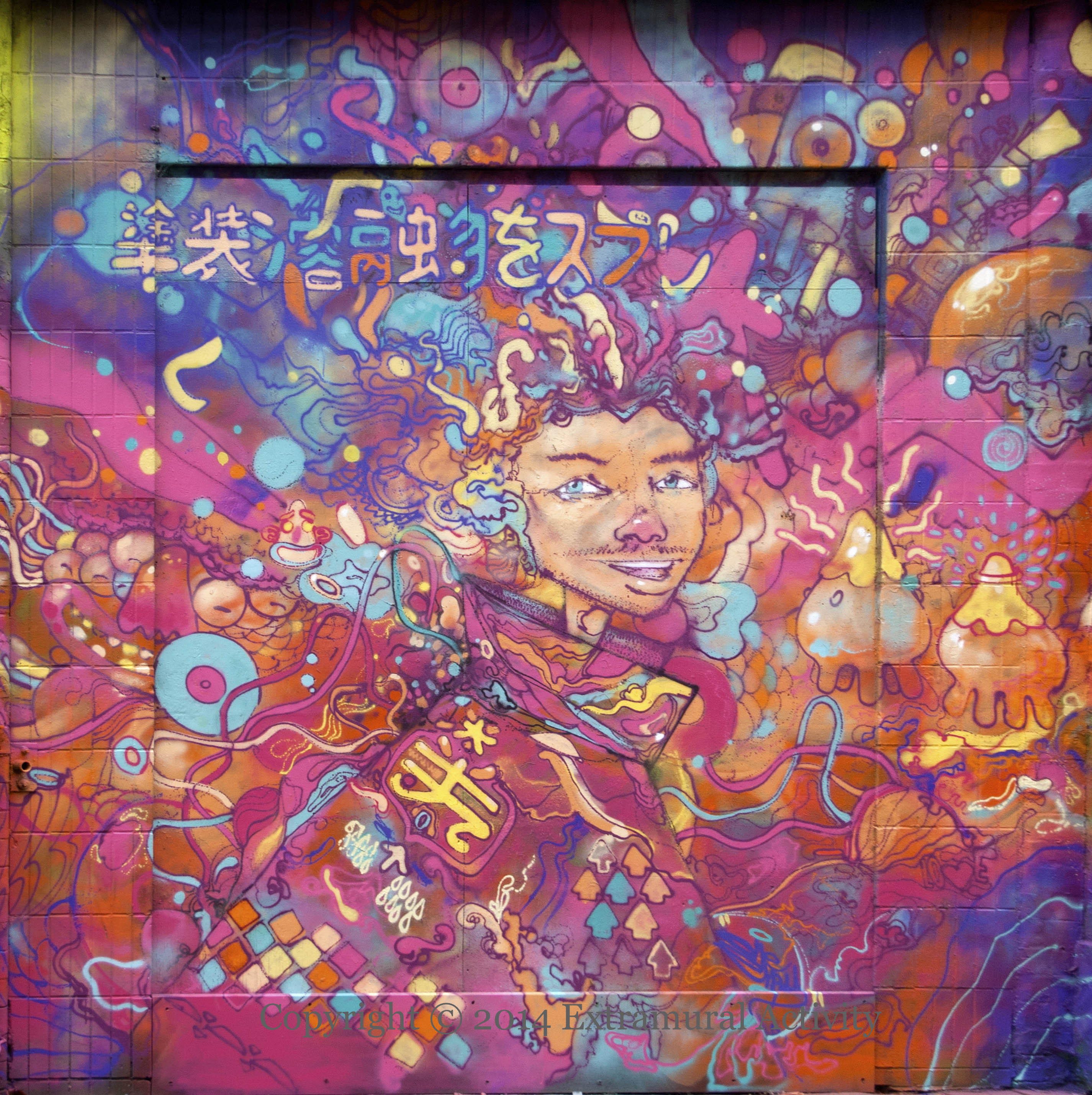 A new piece for CNB14 in Lower Garfield Street, immediately recognizable from Scottish artist Elph’s inimitable style, here using a palette of pinks and blues. On his Fb page you can see a sketch done in preparation for the work.