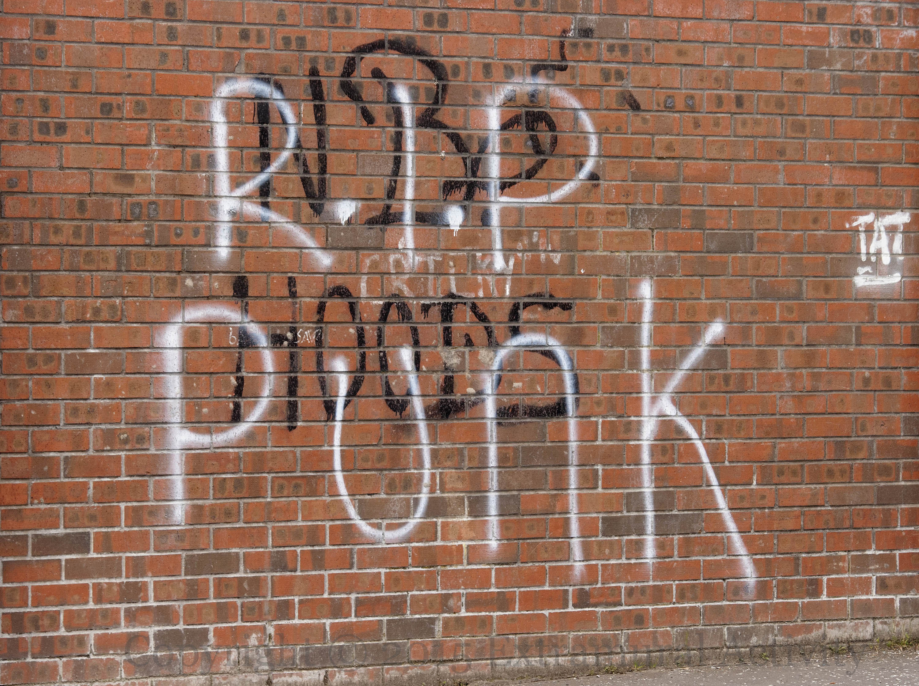 The suicide of young people continue to cast a shadow over Belfast and the rest of Northern Ireland. (The suicide rate has almost doubled since the ceasefire; a fifth of those dying are under 25.) Here are three images from west Belfast, two from Black Mountain – “RIP Caomhan” and “RIP Butts” where the lettering from “End Brit/S’Mont Cuts” (see Credit Union Limited) has been repurposed. “RIP Punk” is from the junction of the Whiterock and Springfield Roads.