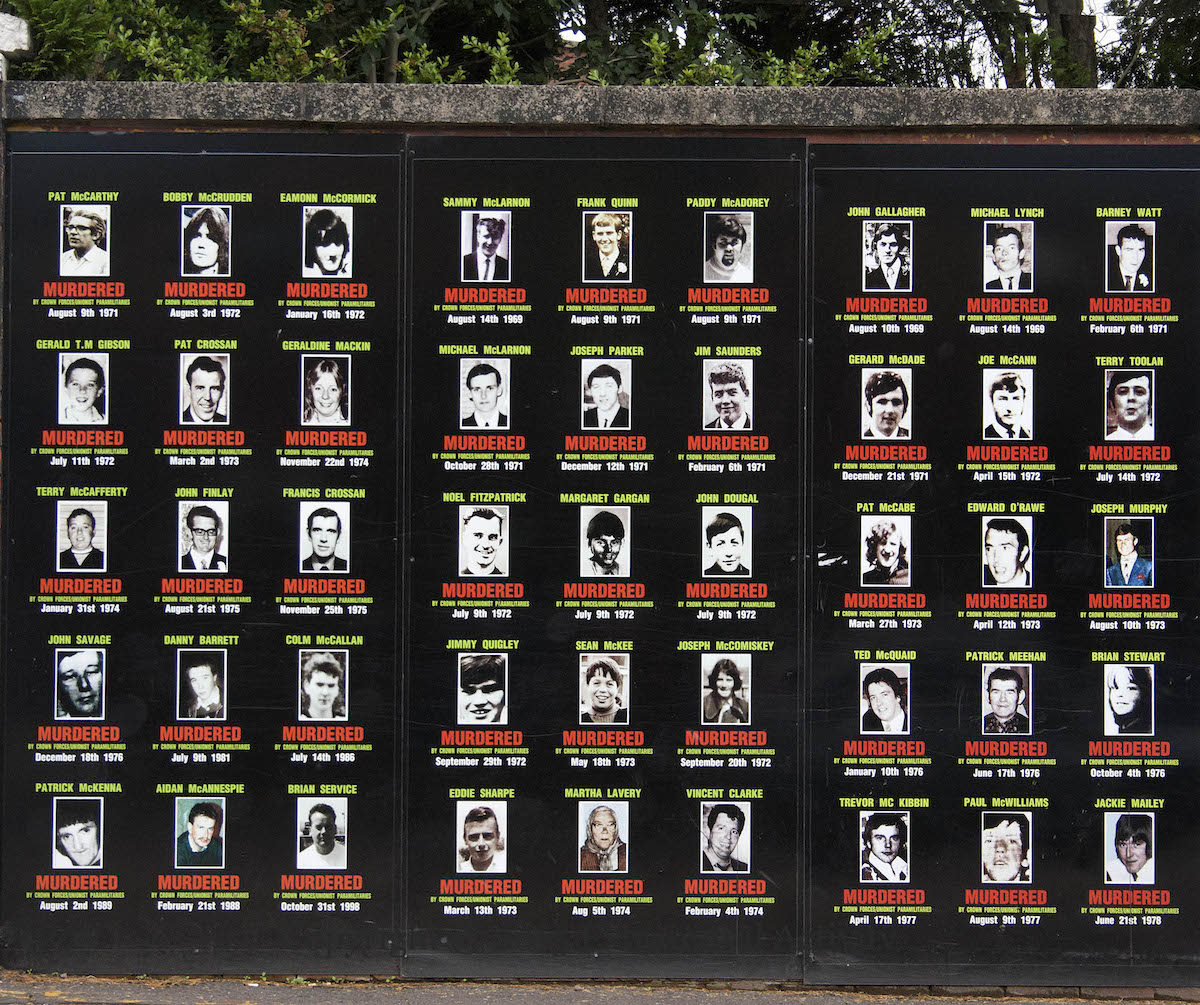 The final three panels (panels 16-18) of the ‘murdered’ follows to the right of the Ballymurphy board. (These are new additions, as compared with 2011.) They are then followed by the final board, to the WBTA.