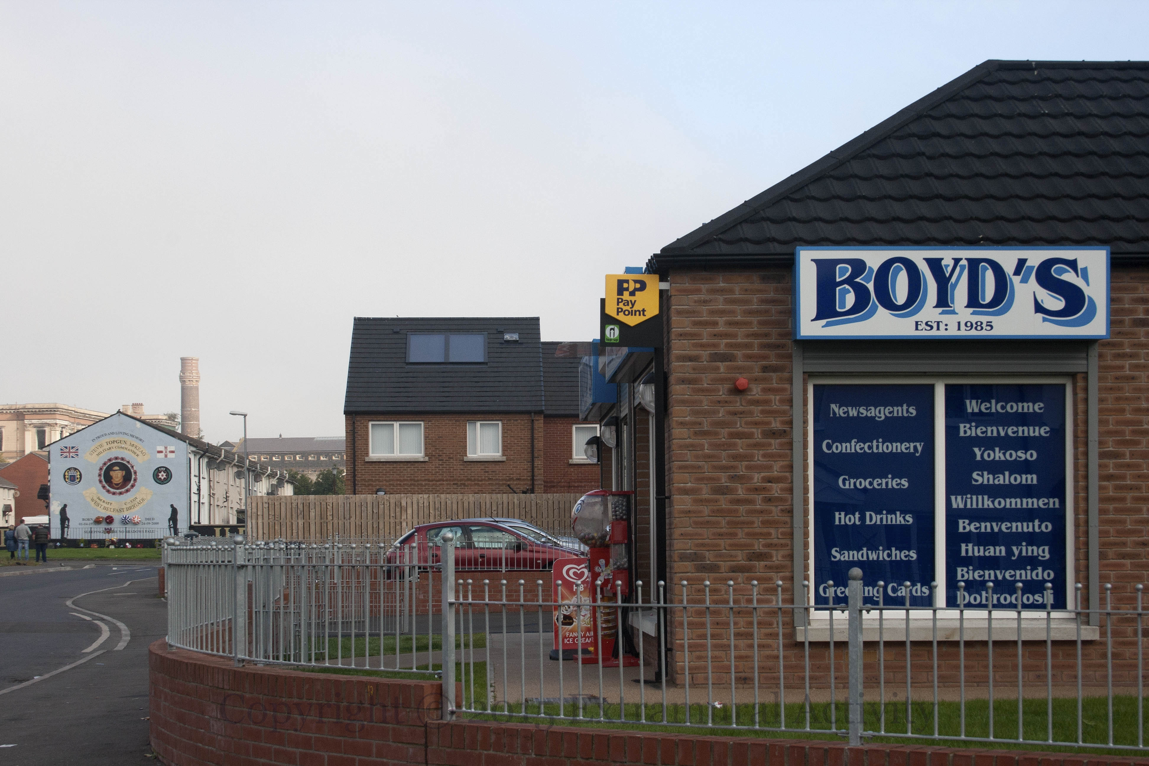 Tourists from France, Japan, Israel, Germany, Italy, China, Spain and Croatia are welcomed to Boyd’s shop in the Lower Shankill estate.