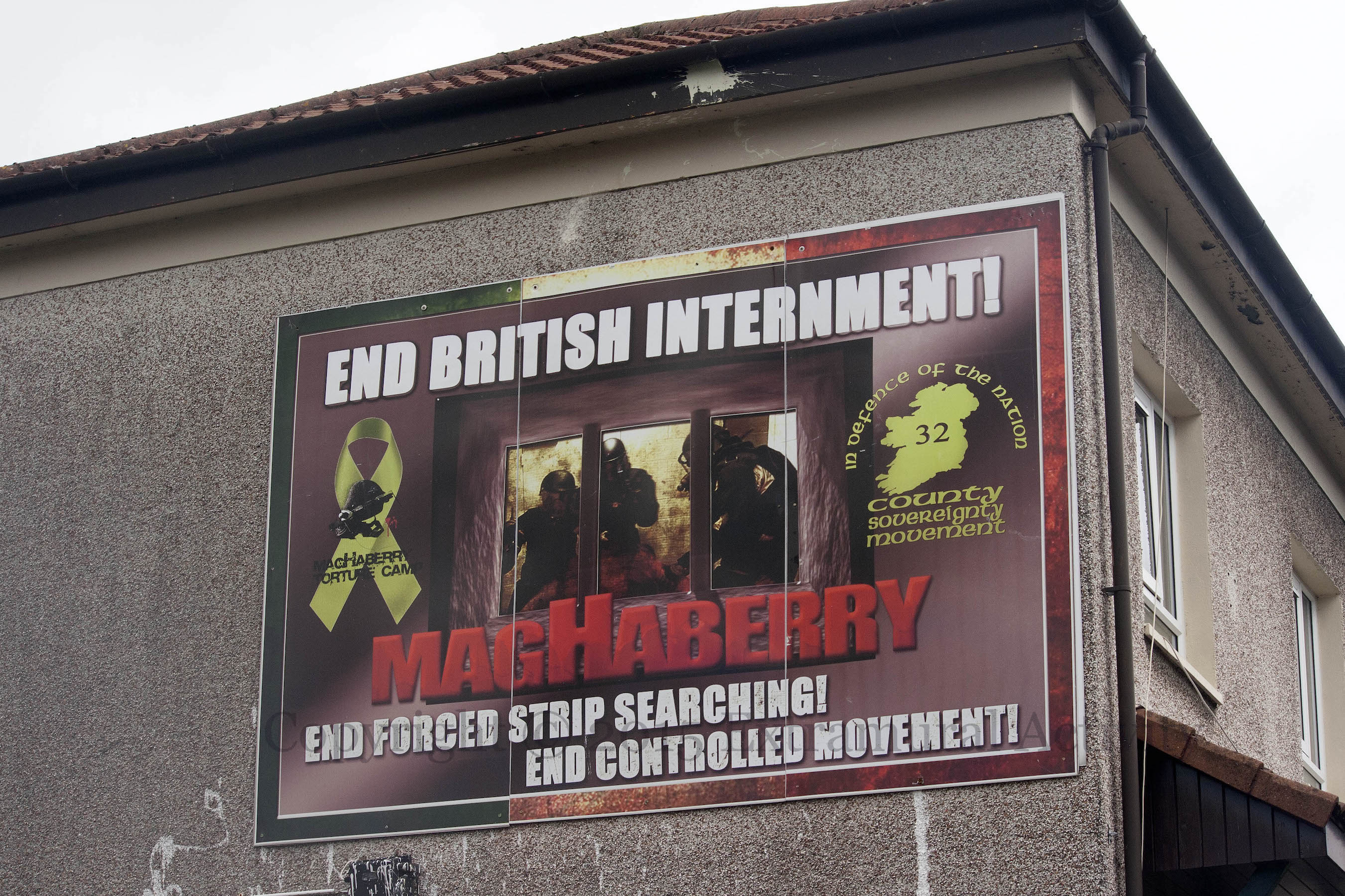 Here are three boards in Derry focused on HMP Maghaberry. The high security prison holds 1,000 prisoners and segregates loyalists and republicans, a situation described as “a festering sore” in a recent inspection. (Tele) Republicans say that the current crisis overlooks existing issues such as controlled movement and strip searches. (Irish News)