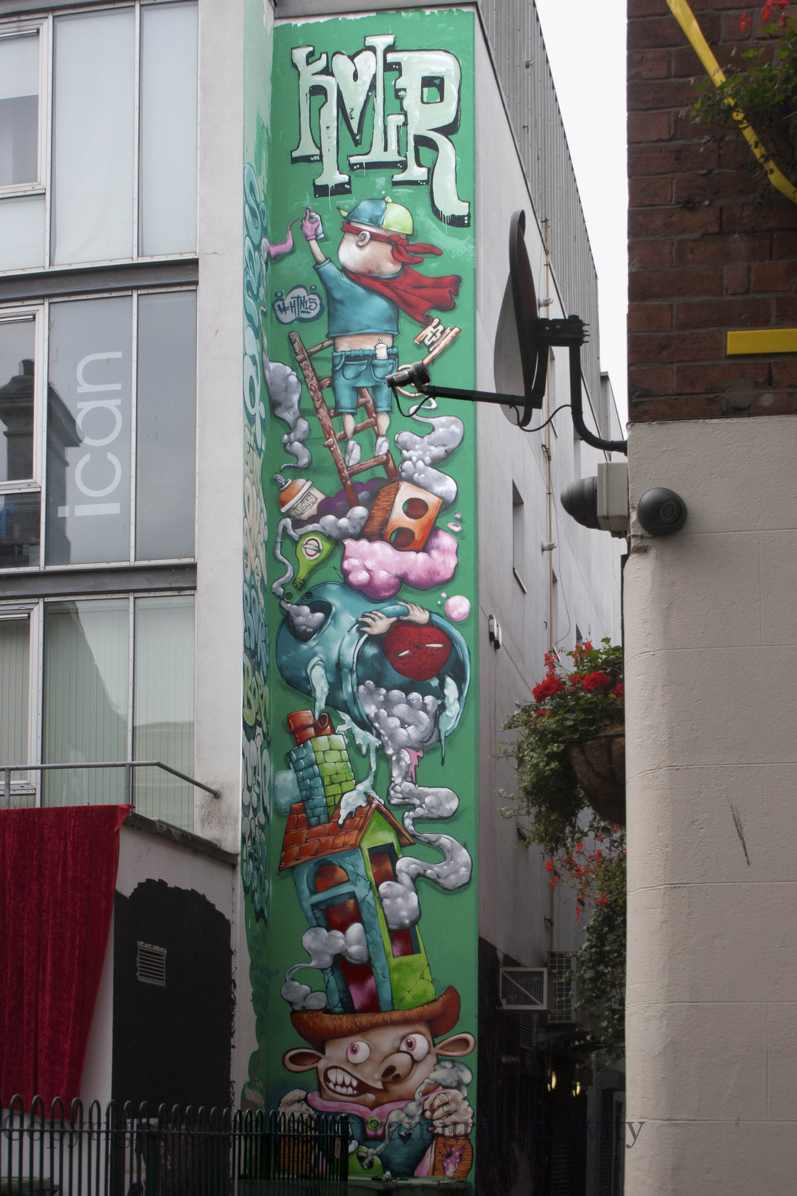 X03021 X03020 culture night belfast hit the north spiderman fools spray paint can brick bottle ladder graffiti rors born fin maq