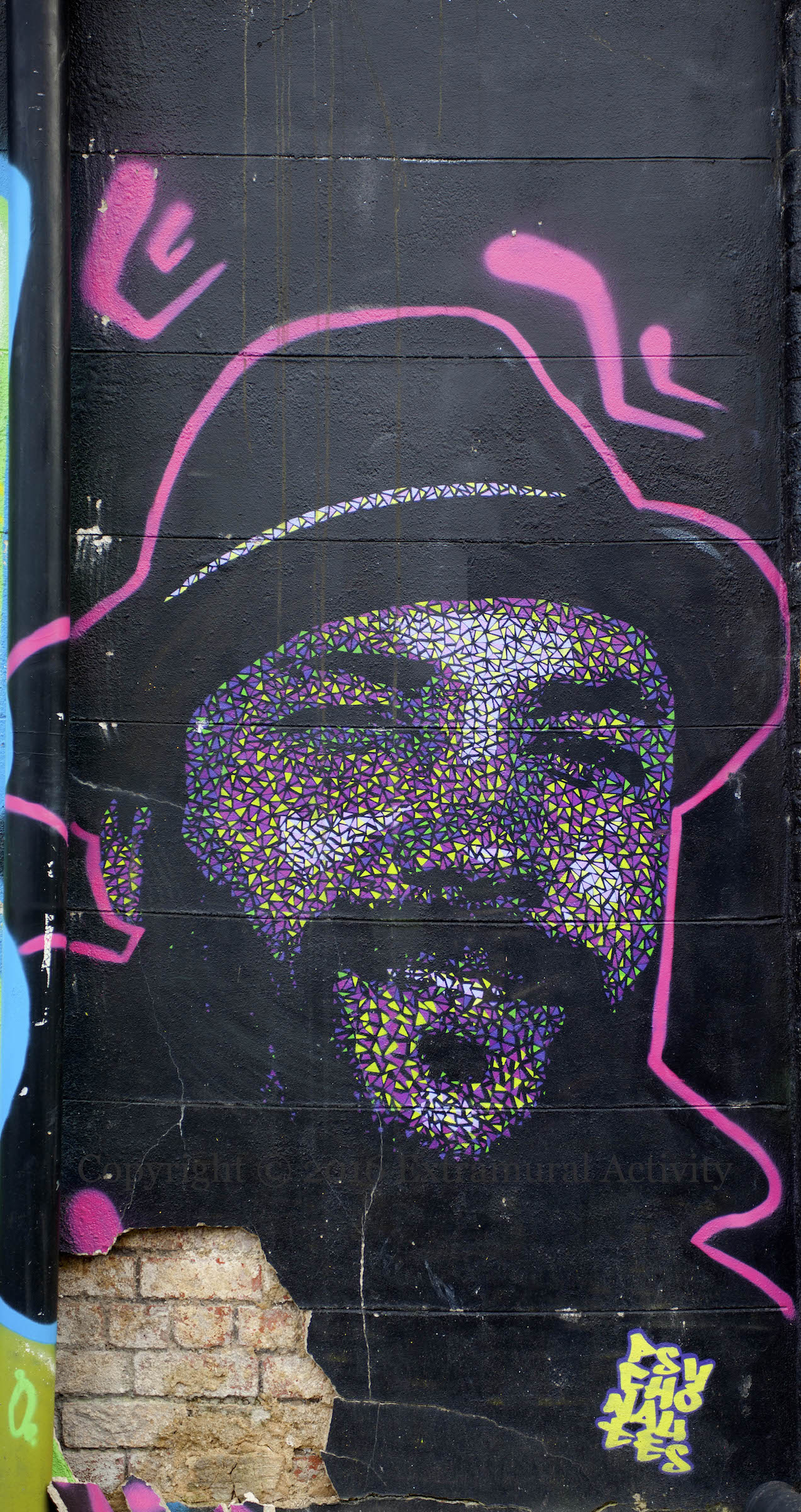 Graffiti artist Jason Williams (REVOK) is paid homage by Psychonautes in Corporation Street. In 2018, H&M would sue Williams for use of a Brooklyn, NY piece by him (WaPo) before capitulating to a public outcry on-line.