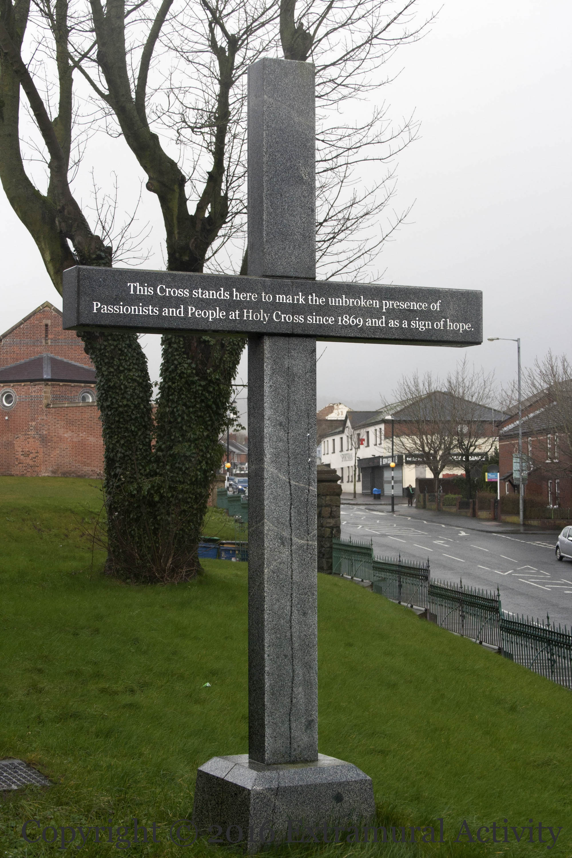 X03302 X03305 X03306 X03319 this cross stands here to mark the unbroken presence of the passionists and the people at holy cross since 1869 and as a sign of hope