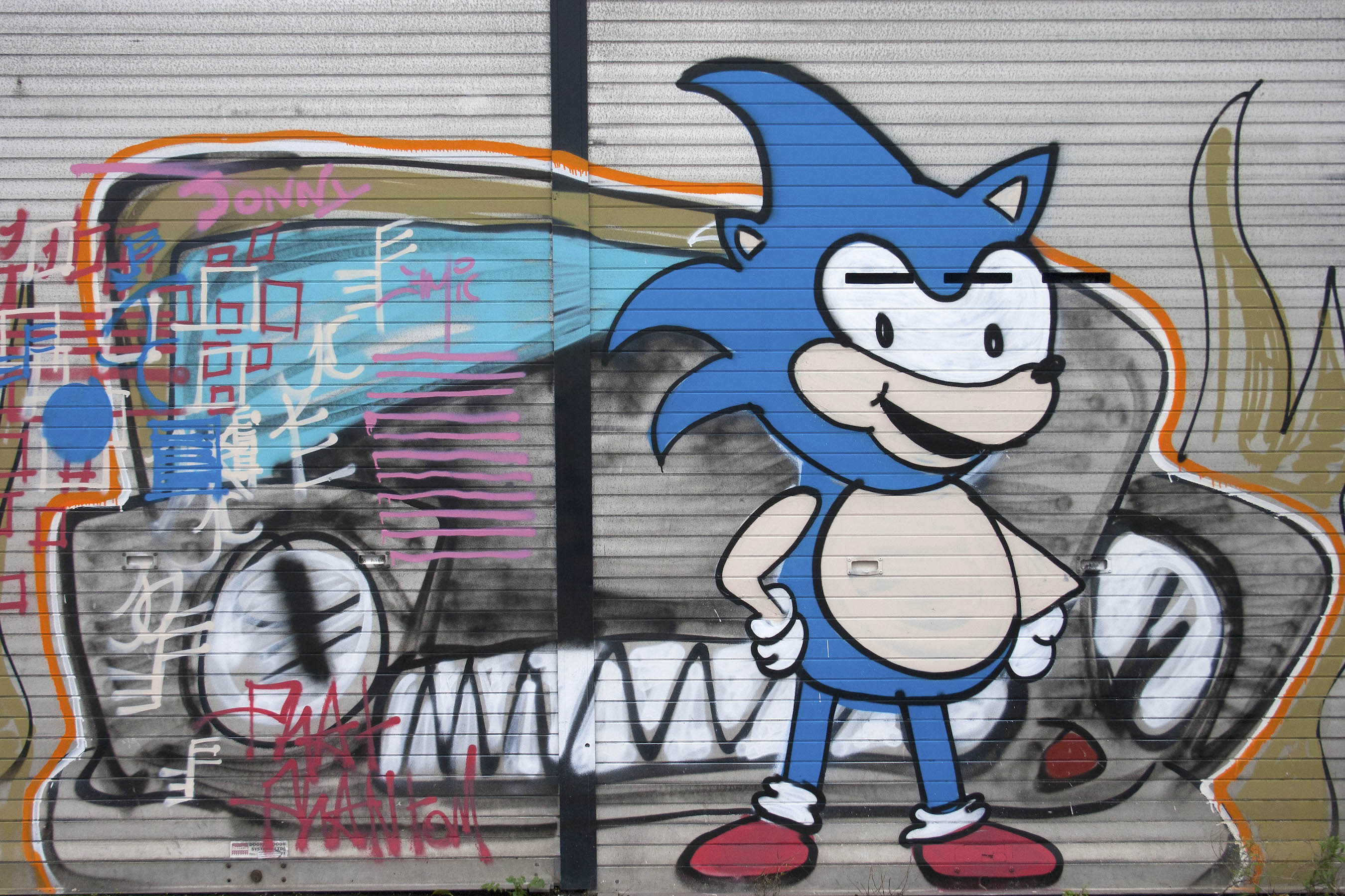 Artist emic (Eoin McGinn) left this parting piece on the shutters of LOFT (Belfast Art Studio & Collective web | Fb) which had to leave its 99 North St address in January due to the impending development of the area. Below is the Sonic The Hedgehog piece it replaces (which itself is on top of the re:Store couch.