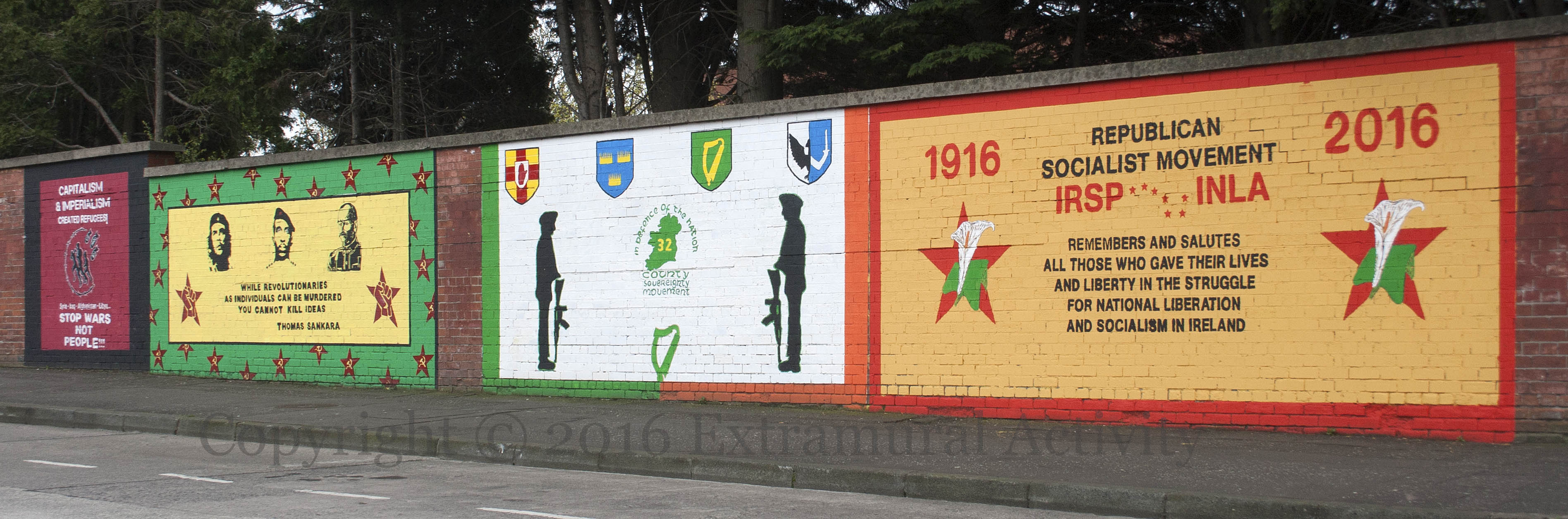 X03406 X03407 X03408 X03409 beechmount ave movement IRSP INLA national liberation army starry plough remembers and salutes all those who gave their lives and liberty in the struggle for liberation and socialism in ireland