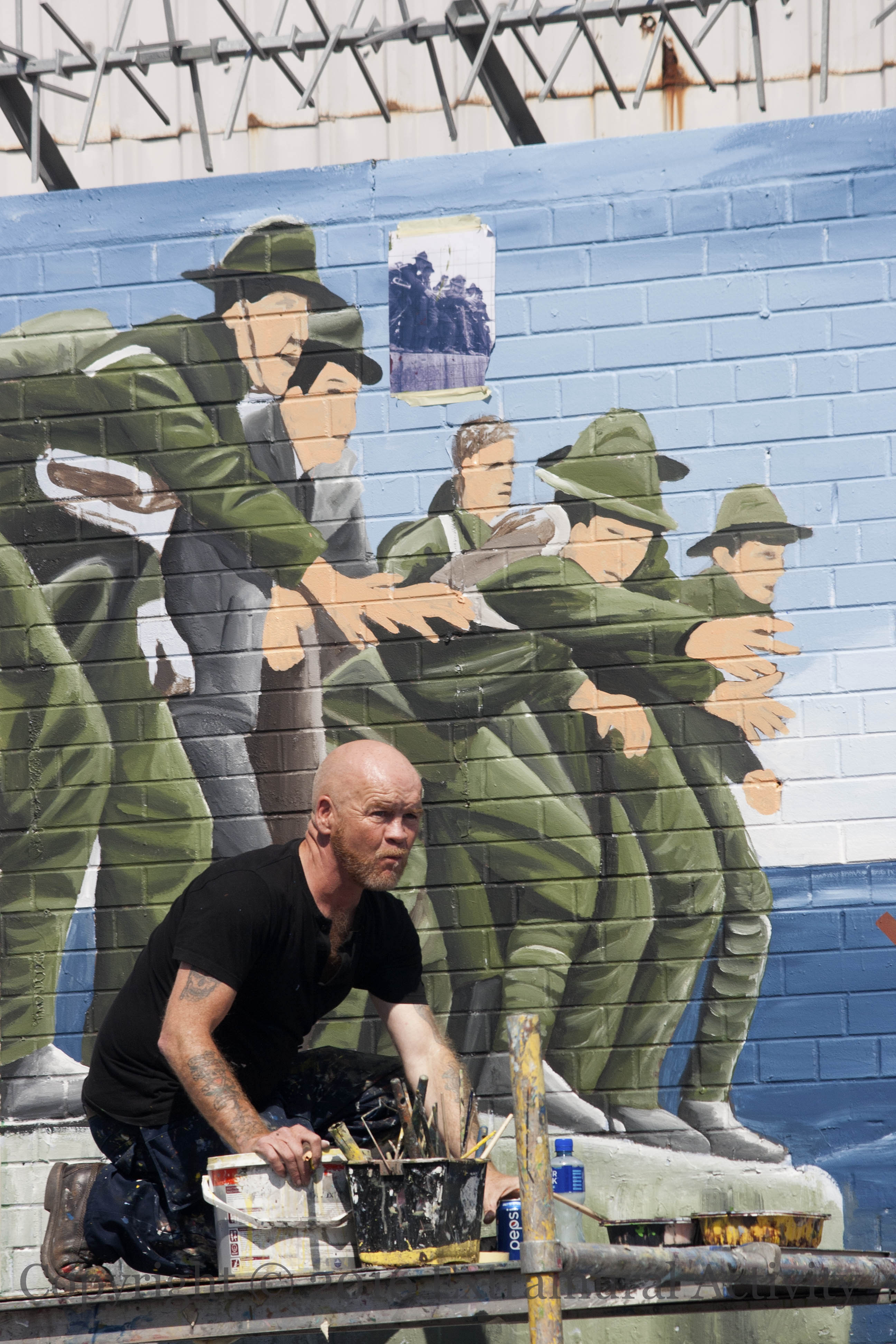 Below are two in-progress shots, and below those, two shots including the artist, Marty Lyons.