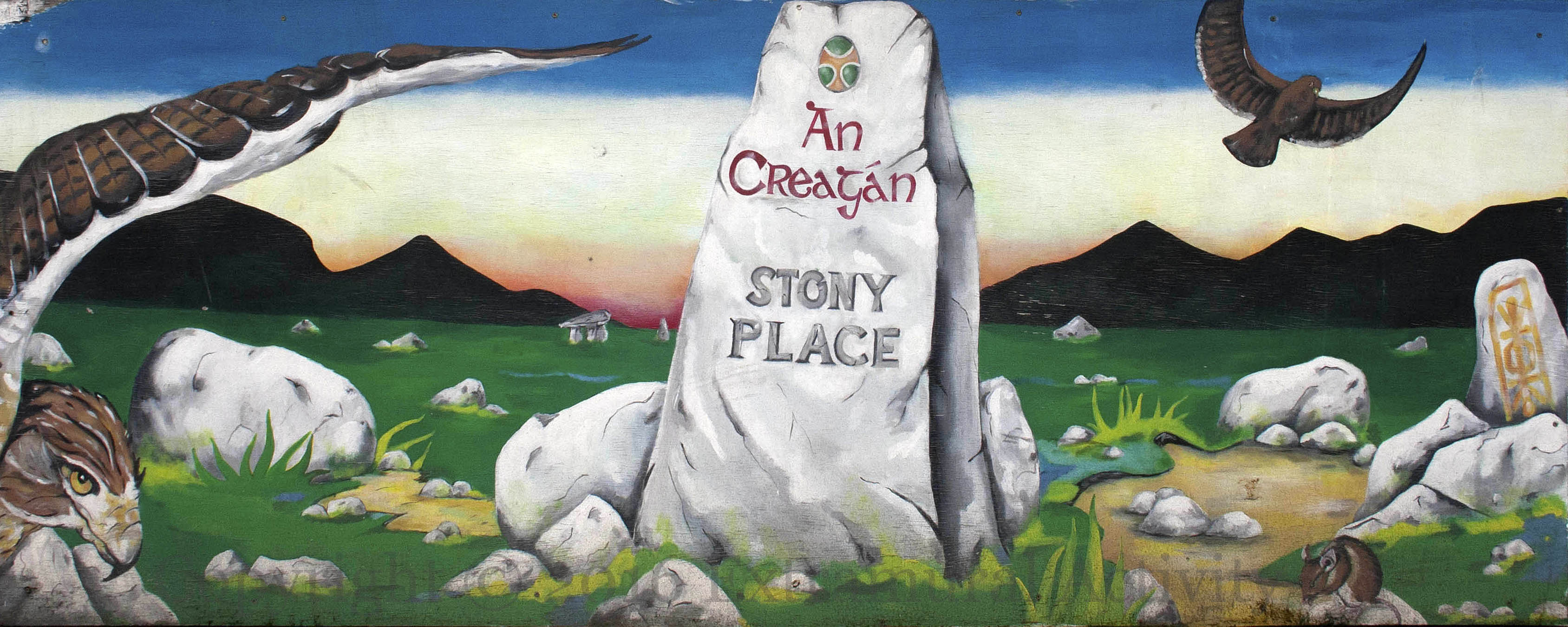 This is the third of three Celtic mythology boards in the Creggan/An Creagán area of London-/Derry. See previously: Tír Na nÓg and Cú Chulaınn.