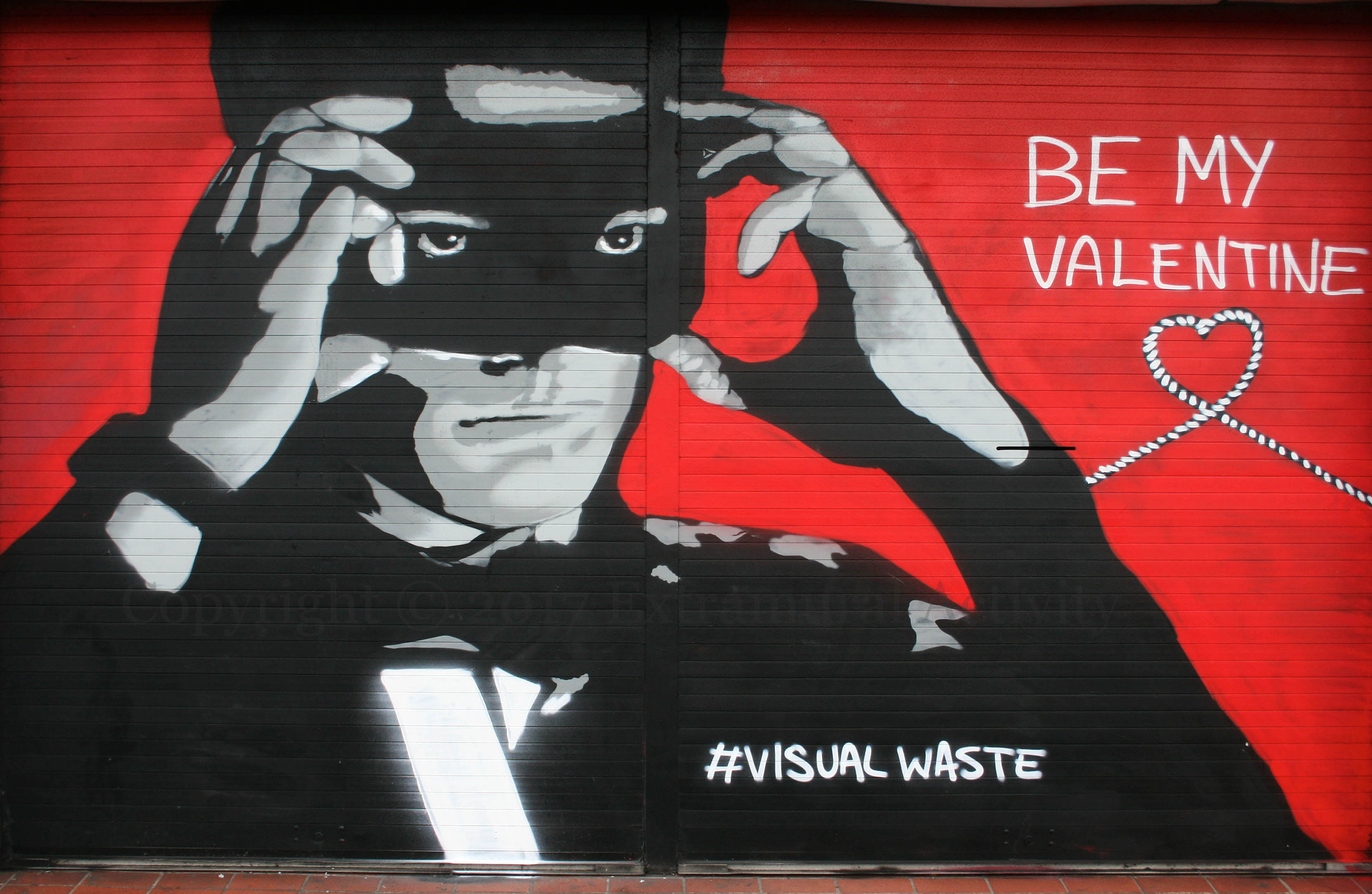 The movie adaptation of Fifty Shades Darker opened just before Valentine’s Day, with Holywood native Jamie Dornan starring as Christian Grey, the billionaire entrepreneur into BDSM – hence the rope heart in the VisualWaste mural shown above.