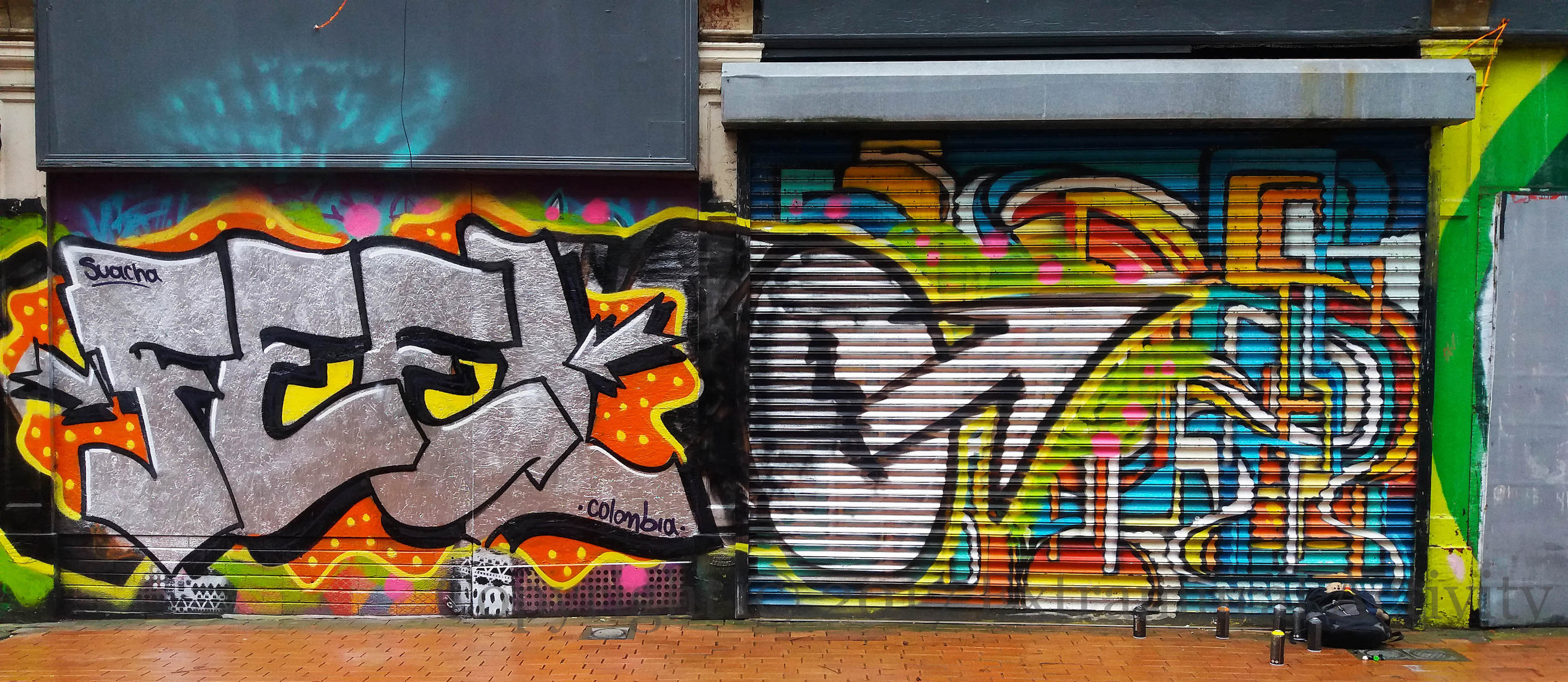 Colombian artist Andres Gonzales (Fb | Flickr) was in town recently and painted two pieces in the city centre. Above, a “young peacebuilders” #youth4peace mural in North St; below, “Feel” in Garfield St.