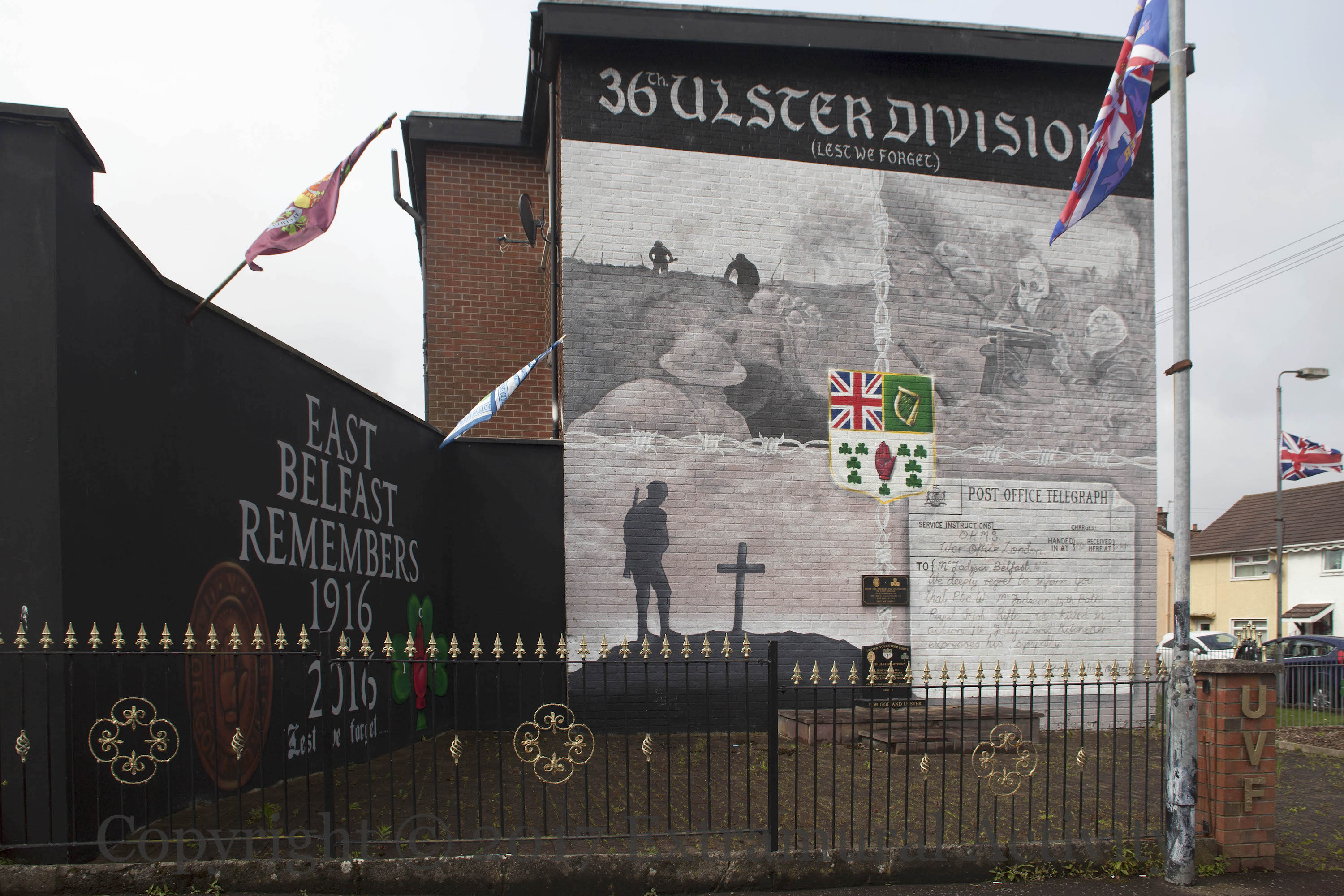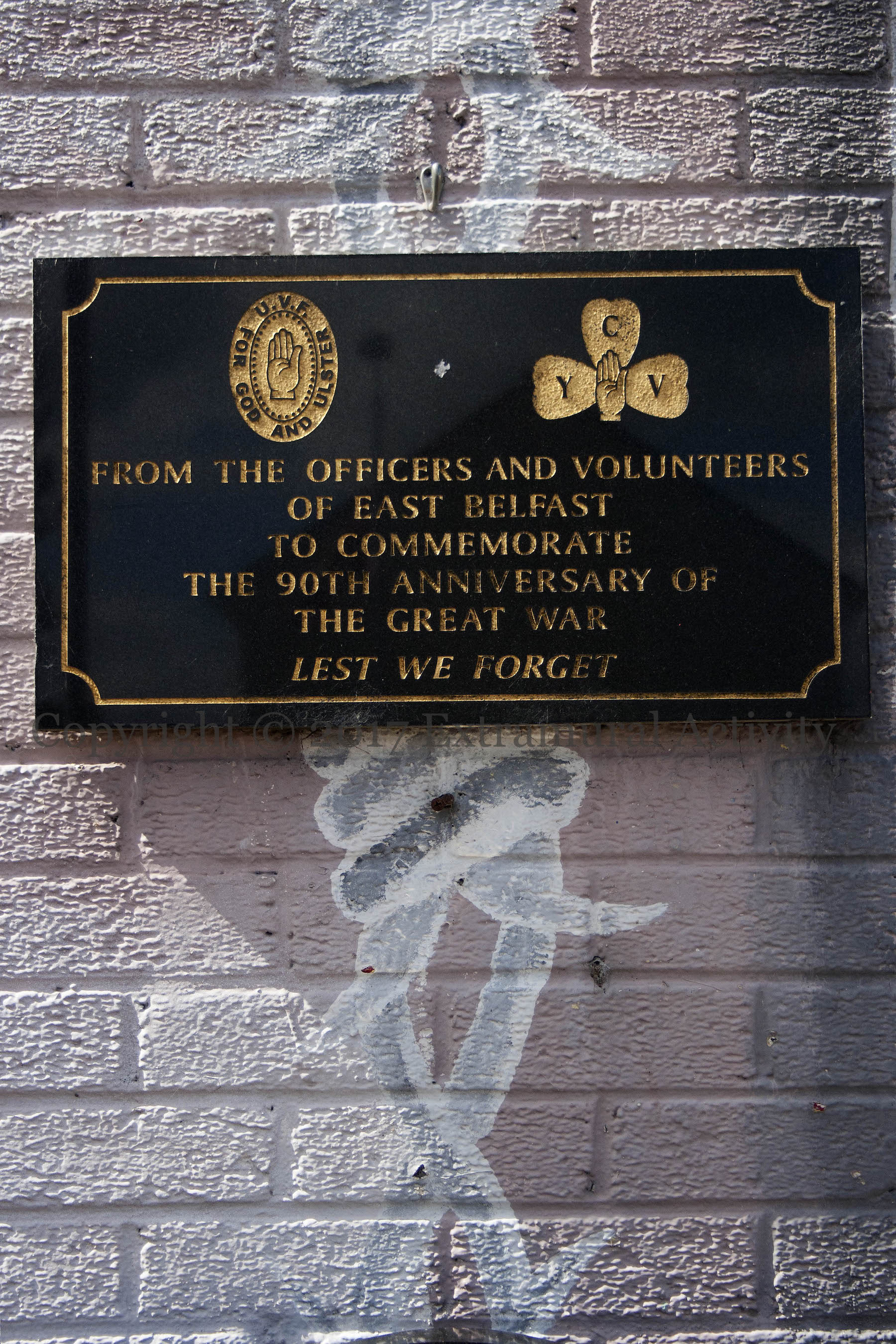 As the plaque in the third images shows, the mural was originally painted in 2006 for the 90th anniversary of the Battle of the Somme. The plaque was originally in the plinth below the headstone – see Killed In Action. The side wall was painted last year for the 100th anniversary.