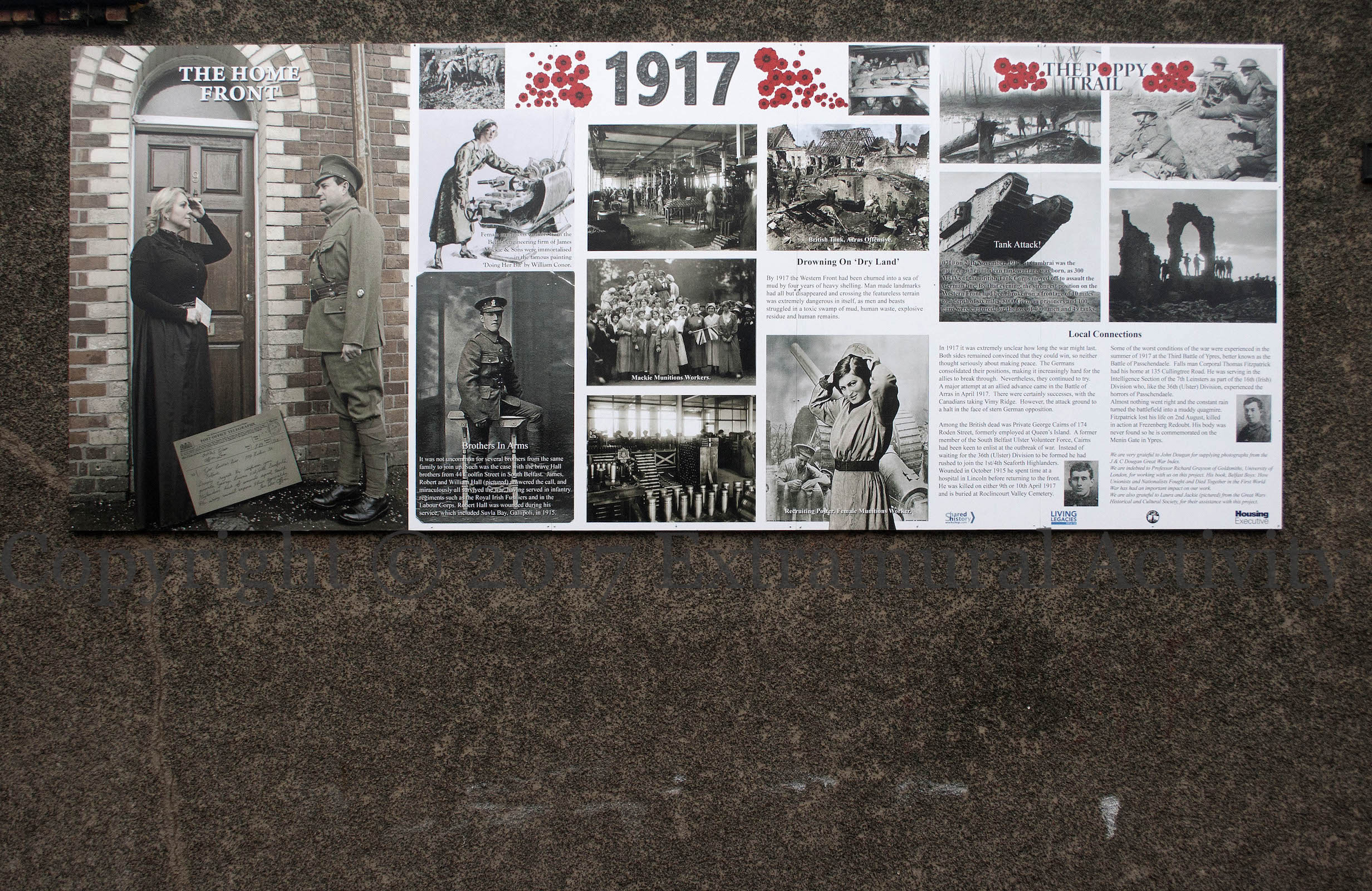 The 1917 board in the Poppy Trail series (1914 | 1915 | 1916) celebrates female munitions workers as well as making local connections to the battles of 1917: George Cairns of Roden Street and Thomas Fitzpatrick of Cullingtree Road.