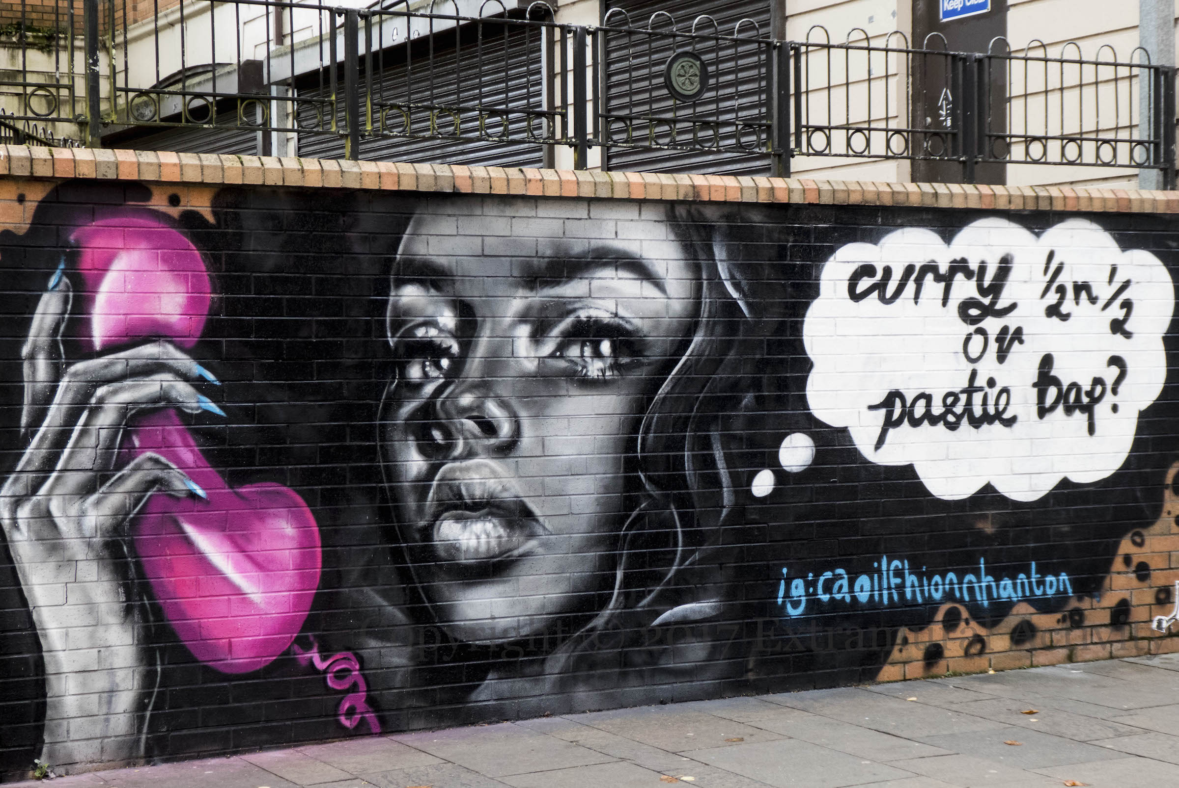 19-year-old Caoilfhinn Hanton from Tramore (inst) spray-painted this representation of a dilemma familiar to many: what to get from the take-away – curry 1/2 n /1/2 or pastie bap?