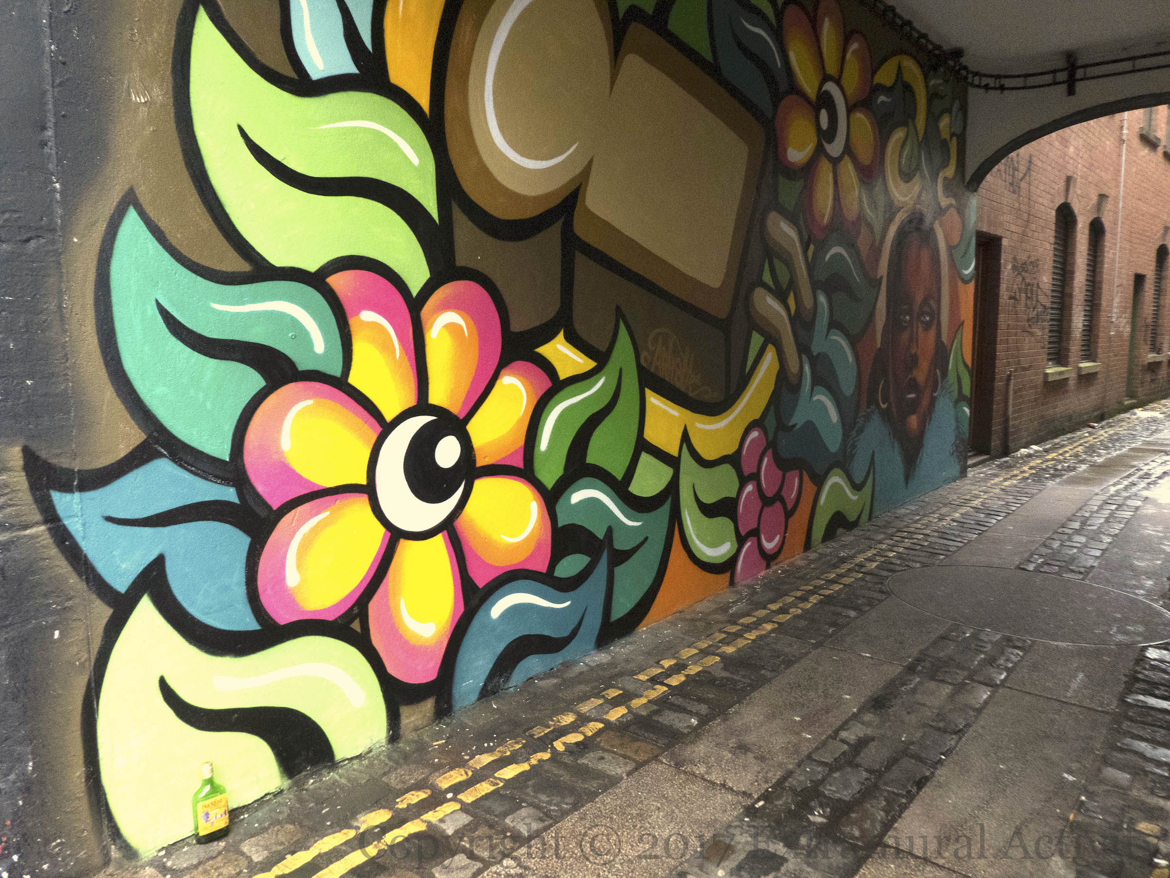 London street artist Artista (web) was in Belfast for Culture Night/Hit The North back in September painting her trademark toast and flowers in Exchange Place.