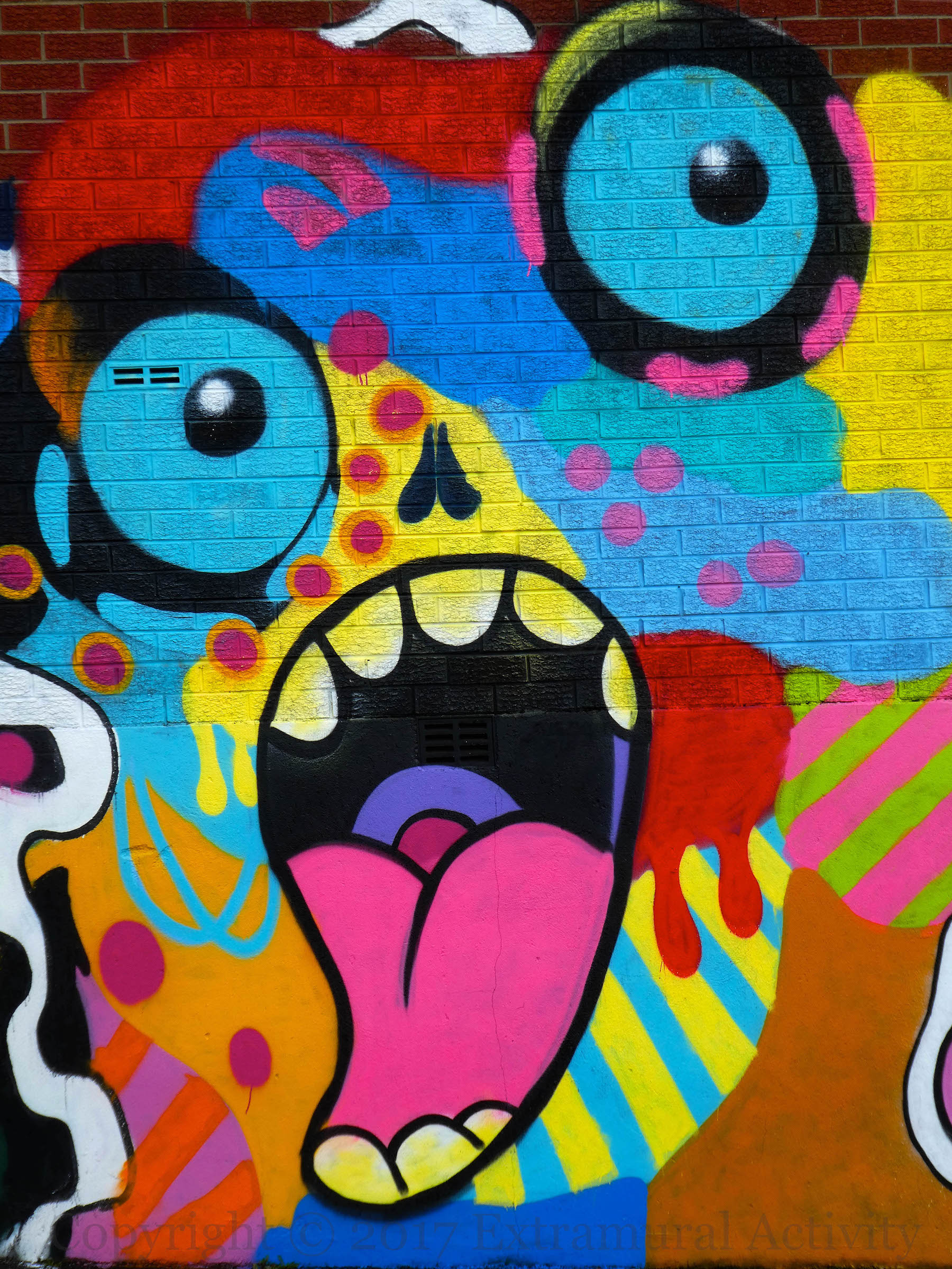 This striking art – perhaps an anti-drugs message? – is on the outside wall of the Turf Lodge Tenants’ Association & Social Club (Fb) – or simply “The Green Hut” – which served as a community centre during the Troubles. For a history, see the middle part of the NVTv programme The Edge Of The World.