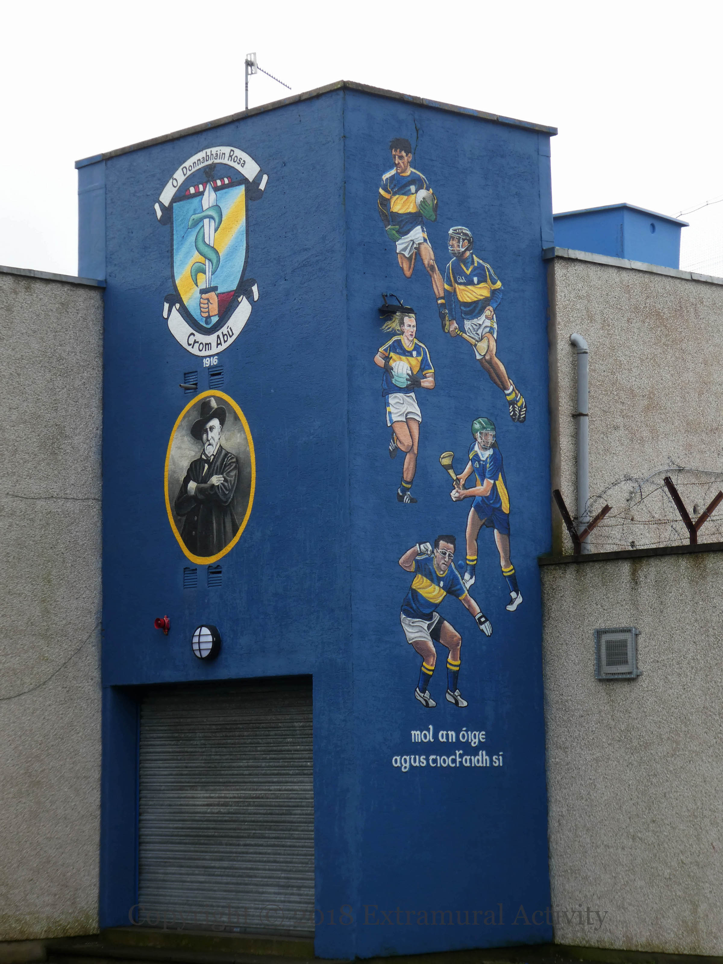 O’Donovan Rossa GAC (web | tw | Fb) dates back to 1916, just one year after the death of republican Jeremiah O’Donovan Rossa (at whose funeral Padraig Pearse gave the oration – “The fools, the fools …”). “Crom abú” is a war-cry of the ancient FitzGeralds as they attacked the O’Donovan fortress at Crom, Co. Limerick. Some of those fleeing eventually settled in Rosscarbery, Co. Cork, which is where Jeremiah was born in 1831. The sword is a symbol of justice, the snake of wisdom.