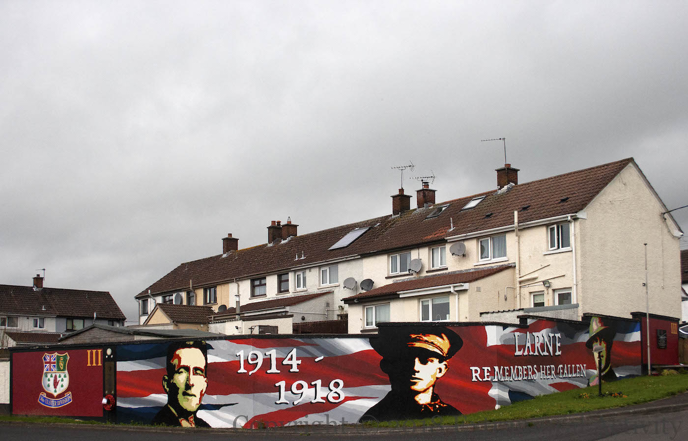 History Hub Ulster and Larne Urban District Council are conducting a search for additional names of residents from the Larne area who died in WWI, to add to the 147 included on the war memorial in Inver. The dead are also remembered in this wrap-around mural in Milbrook. We will have close-ups of the different panels and plaques tomorrow. For images of the launch, see the Friends of the 36th – Cairncastle facebook page.