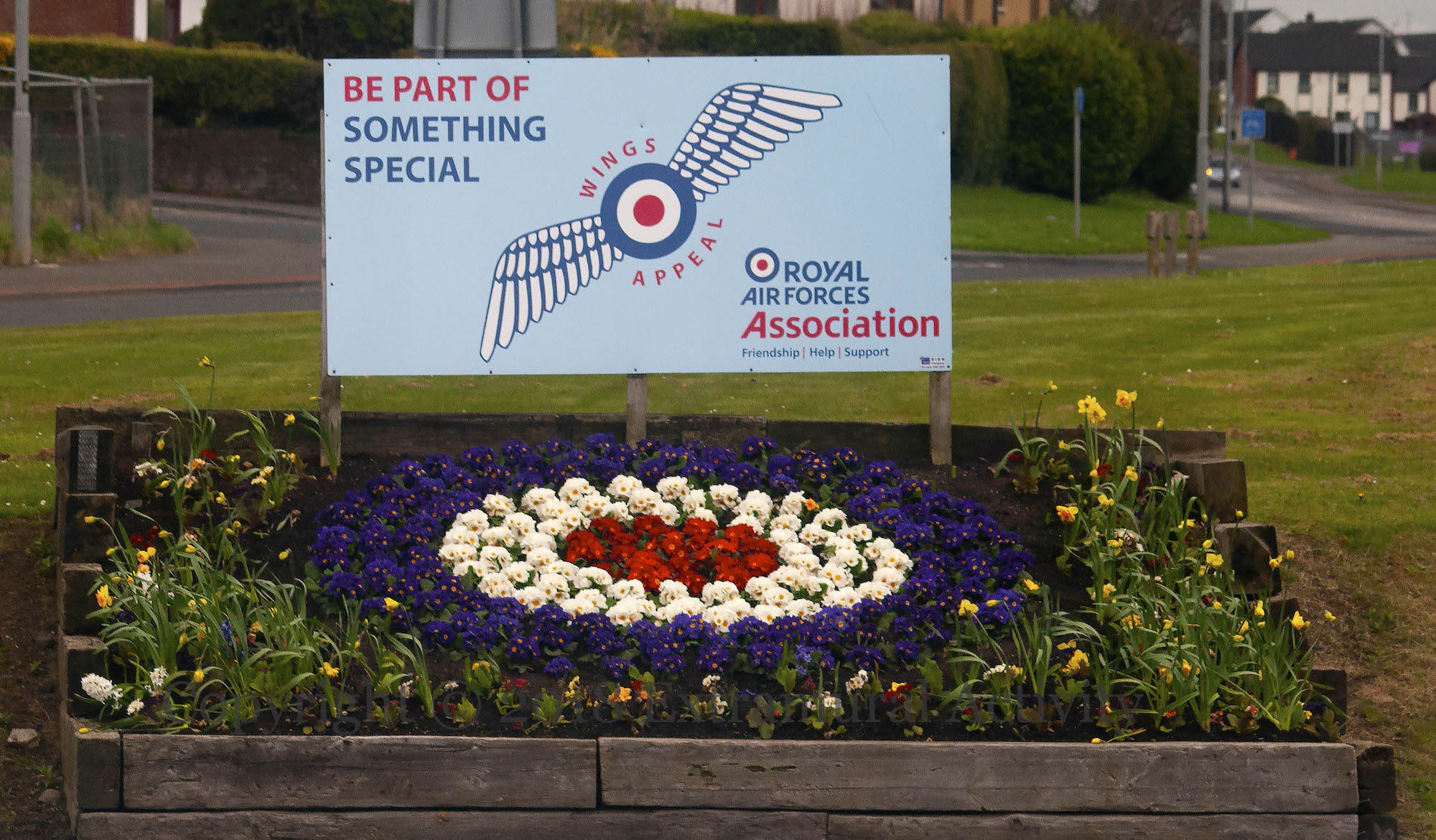 The Royal Air Forces Association’s ‘Wings Appeal’ has been raising money to support Air Force members and their families since 1951 (RAFA). This bed of flowers in the pattern of the Air Force’s red, white, and blue roundel (the reverse of the French roundel) is at the start of the Antiville Road in Larne.
