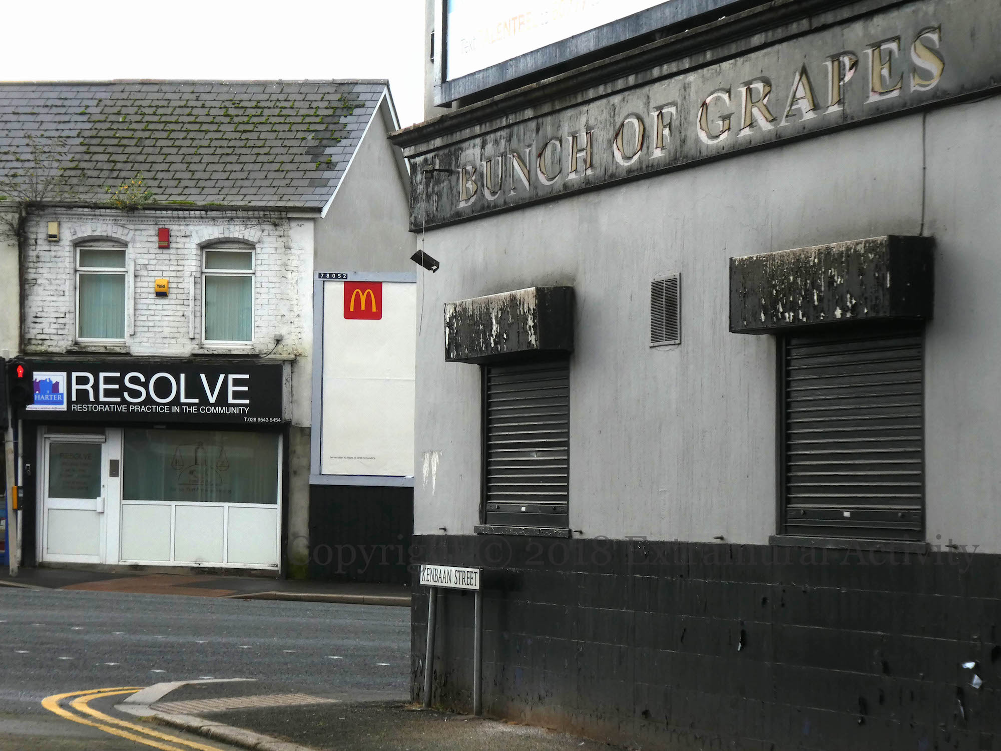 torture and killing of Georgie Legge in 2001 (Irish Times). The east Belfast Resolve NI (Fb | tw) office – formerly a DUP advice centre – sits across from it at the junction of Beersbridge and Castlereagh roads. The pub has been derelict for 5 years or more and an apartment building is to be developed on the site (BelTel). Demolition would also remove Friz’s Hope, Life.