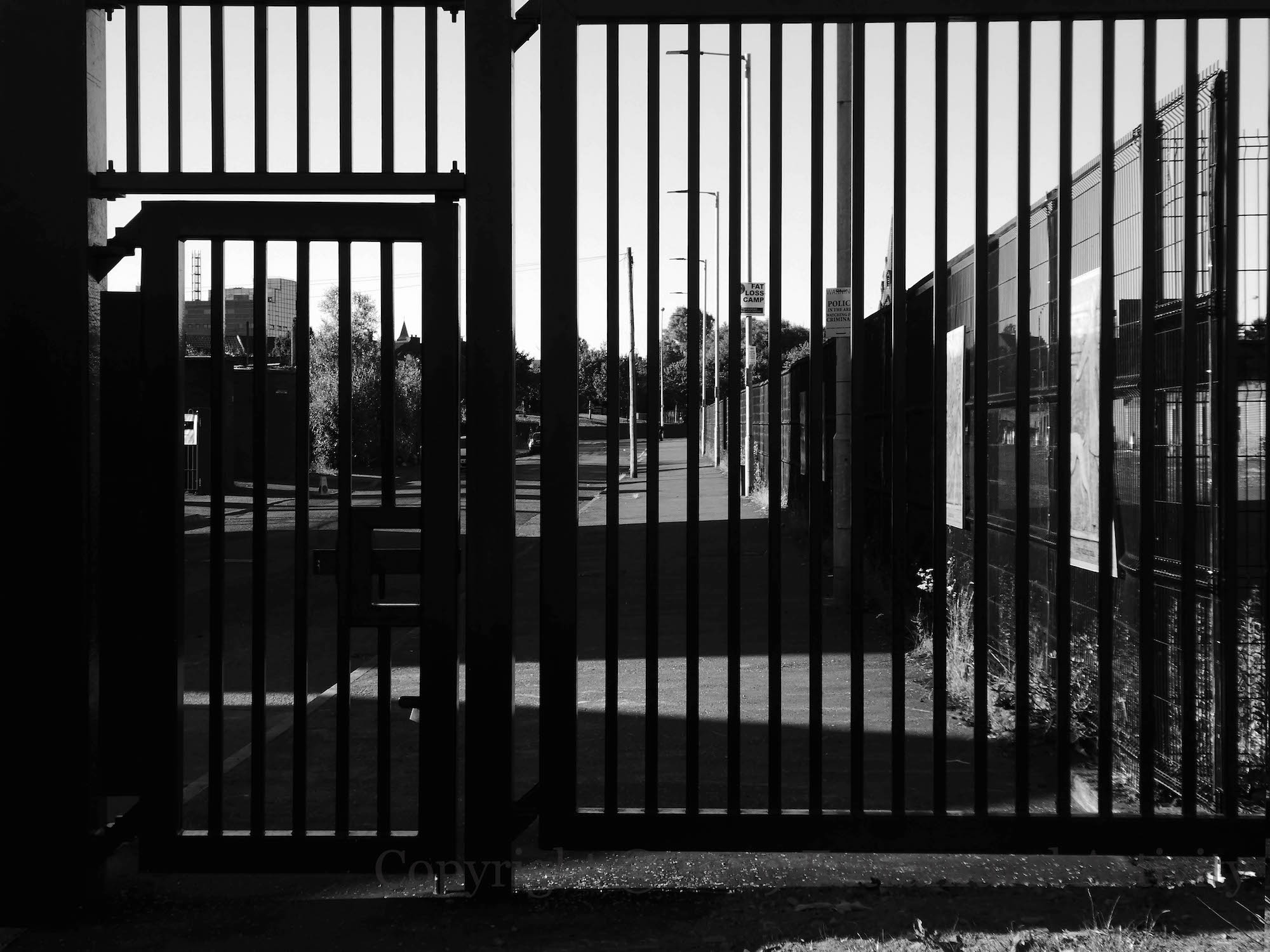 The solid gates at the eastern (city centre) end of the west Belfast “peace” line have been replaced with see-through gates. The plans were released back in February (Belfast Live). Most of the Mickey Marley mural on the left (from the nationalist side) remains. According to the PA, the gates dated to 1992. Other gates have been similarly upgraded: see the gates in Workman Avenue (See-Through Sectarianism) and Howard Street (Belfast Lock-Up). Here is the list of DOJ-owned “interface structures”.