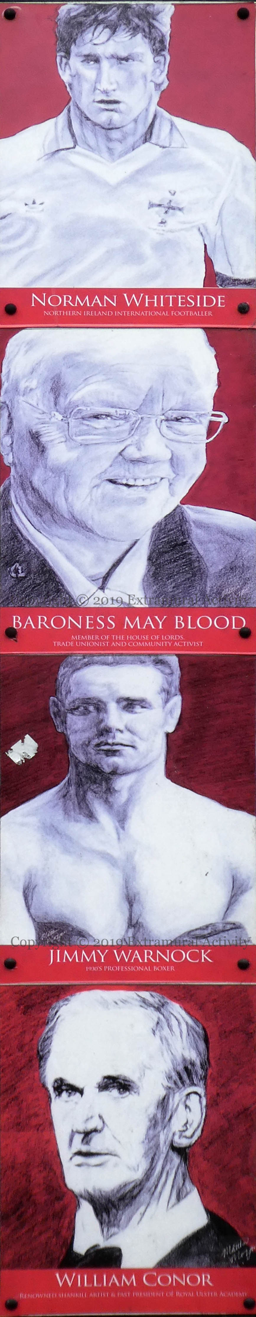 Held over from the old mural are the two strips of ‘famous faces’ on the left and right (see below).