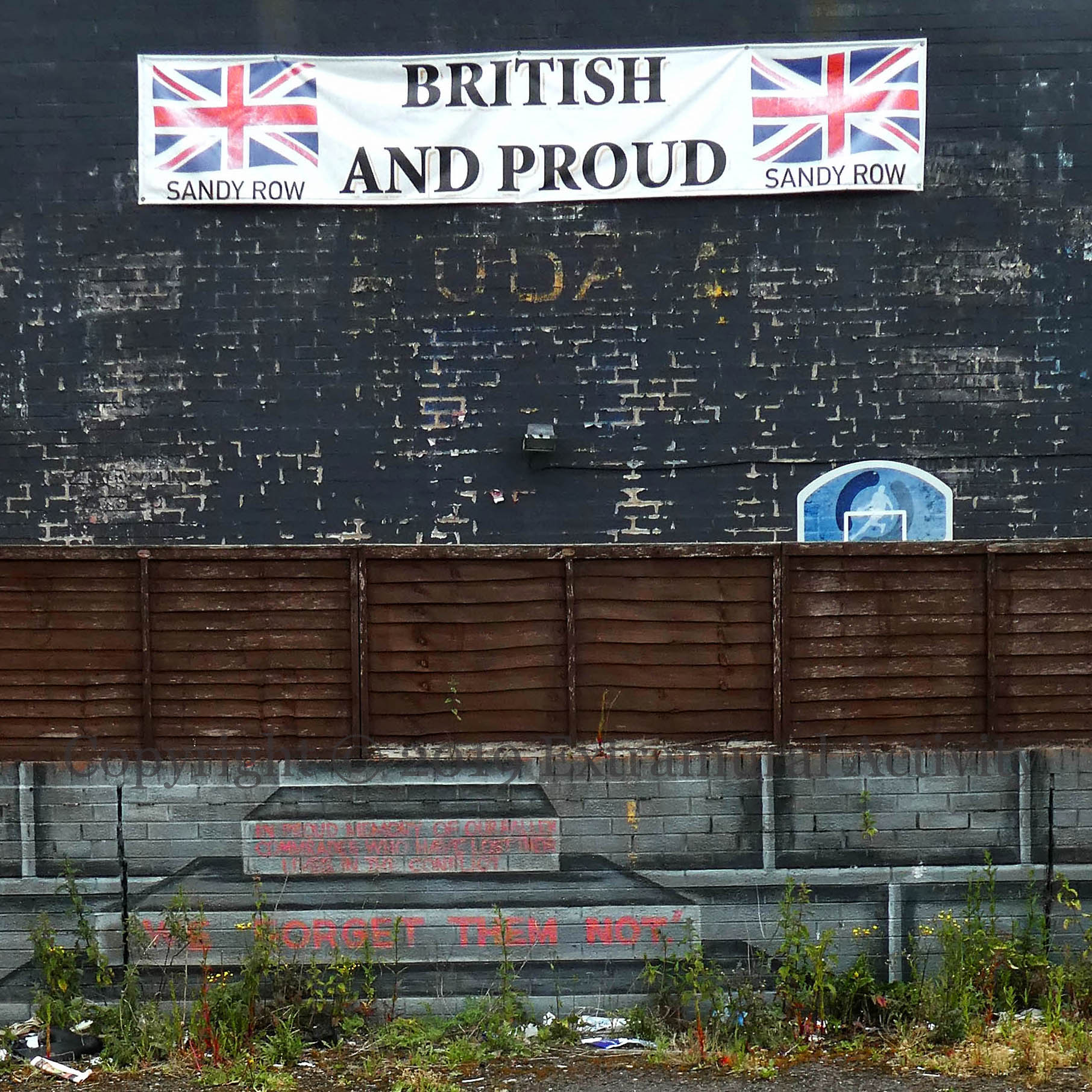 The UDA roll of honour mural (led by John McMichael) in Rowland Way was blacked out in the mid-2000s but has been gradually reappearing since then. (The steps painted on the wall in front read “In proud memory of our fallen comrades who lost their lives in the conflict – we forget them not.”) The banner was used for the “flag protests” surrounding the flying of the Union Flag on Belfast City Hall (in 2012-2013) and then was first hung next to the King Billy mural at the bottom of the Row.